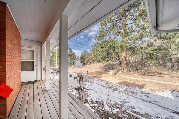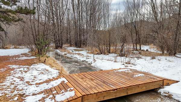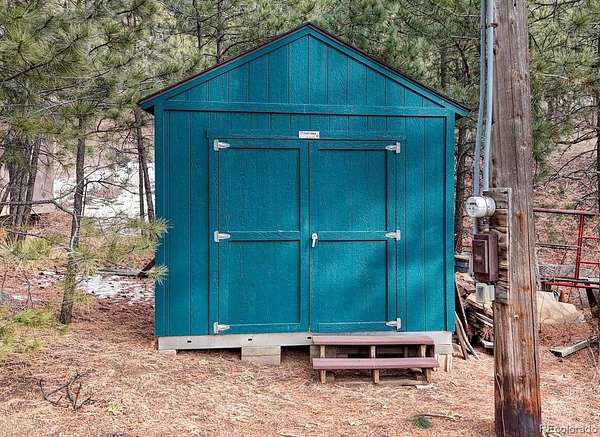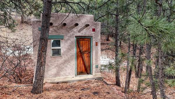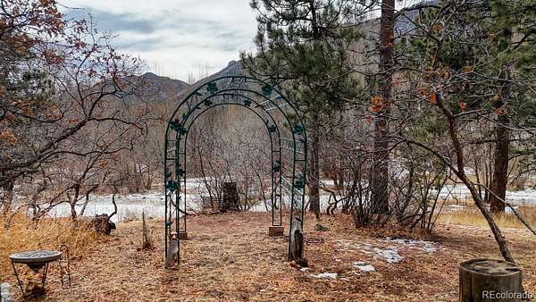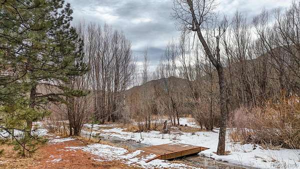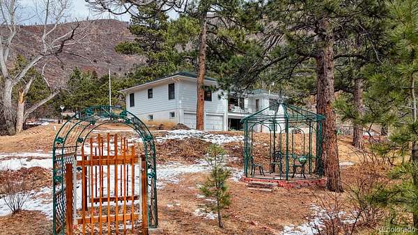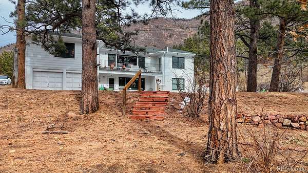 If you are looking for both adventure and tranquility, this is the perfect property for you. Nestled in Ute Pass next to highway 24 and just 12 miles away from I -25, this property offers the rare amenity of over 9 acres with Fountain Creek running the full length of the property. Several small bridges have been erected making access to multiple private trails, roughly 1 3/4 miles, on both sides of the creek ideal. As you walk along the trails, you will be awestruck at the towering pines, willows and the abundant colorful wildflowers. The creek is approximately 3/8-mile-long meandering through the property, and usually during the fall a family of beaver will move in creating ponds and other wetlands features. The land is a wild wetlands ecosystem with various springs feeding the creek, also creating passive sub irrigated areas of lush green grass. Abundant wildlife can be found on the property, including deer, fox, and occasional moose, bear, bobcat and lion. The property is zoned Duplex/Triplex. The home has two separate independent living areas both with their own outdoor access that look out over the beautiful property below. The front of the home has a covered deck. The main level of the house has 2 bedrooms, 1 bathroom, kitchen with a pantry and a stairway for access to the basement, a formal dining area with door to balcony, and a fireplace in the living room. Downstairs is 1 bedroom, 1 bathroom, a kitchen with eat-in area, storage, a fireplace in the family room with a walk-out to the patio, and an entrance to the attached heated garage for easy access to the washer/dryer and utilities. What makes this property exceptionally unique is the fact that it is 9.4 acres, 95% fenced with a recent survey and a recently added 1250 sq ft detached 3-4 car garage and work area for shelter of your vehicles and any grounds' equipment. The electrical upgrades include a 150–200-amp meter, circuit breakers and a new outside panel. Septic system recently upgraded.