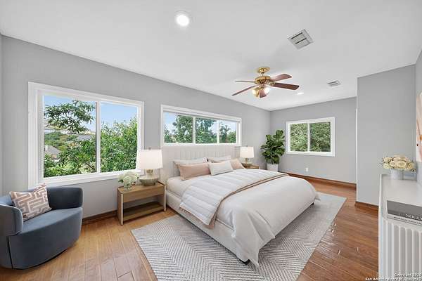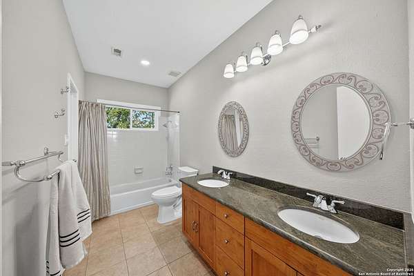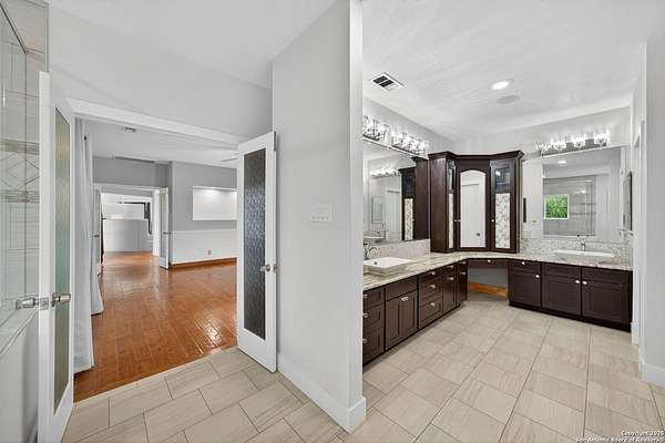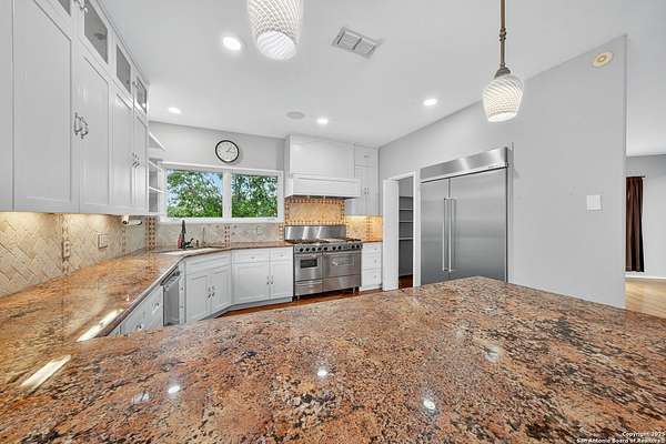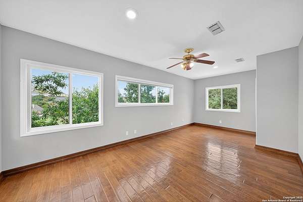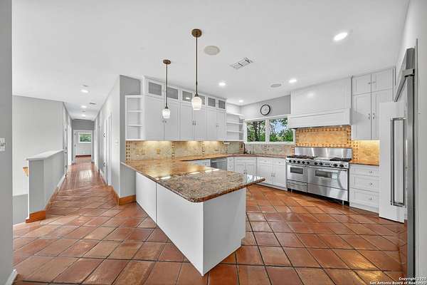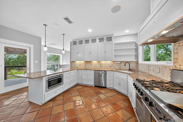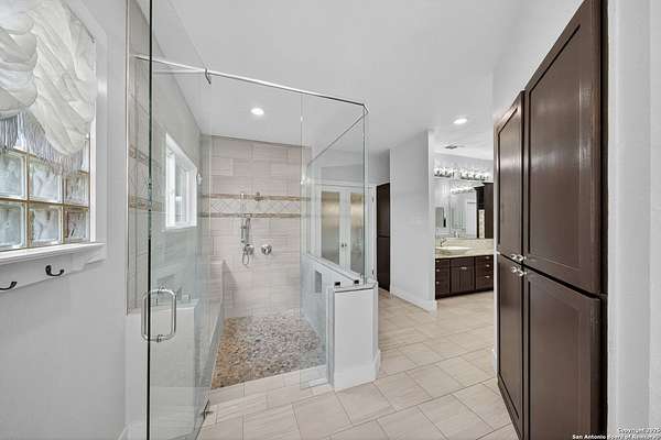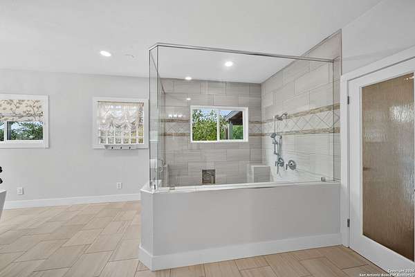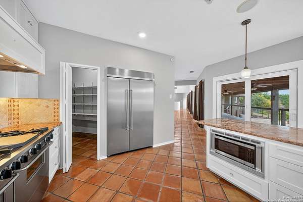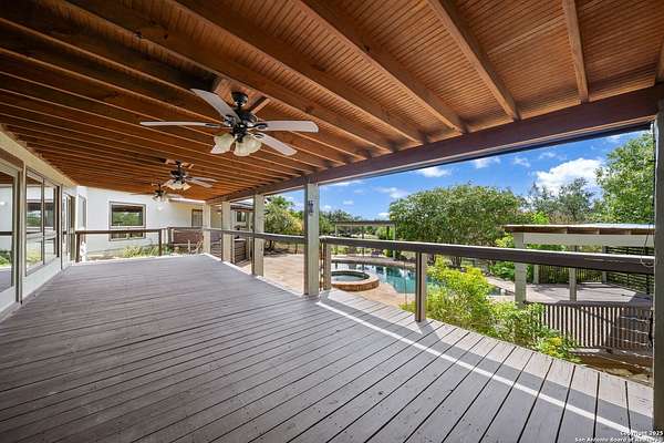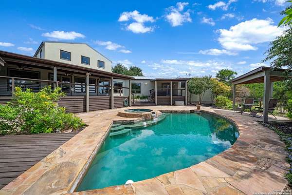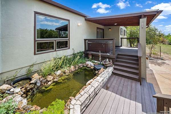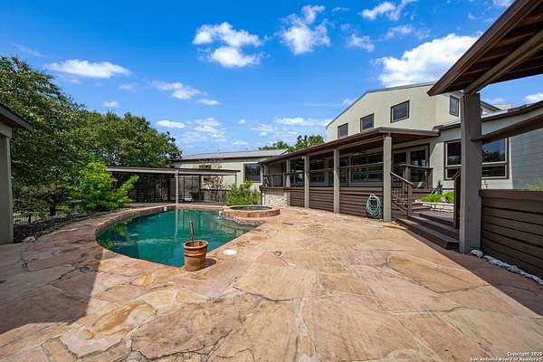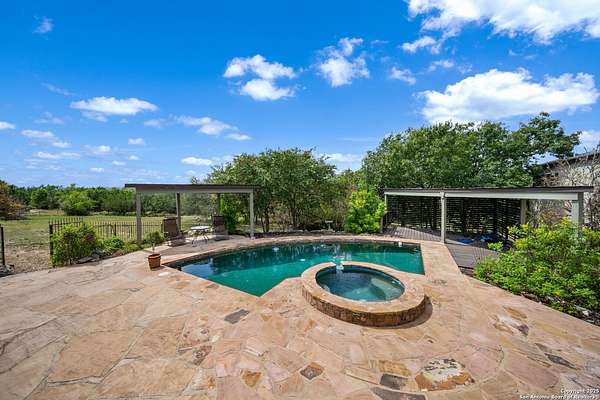 Luxury horse-friendly Hill Country estate with pickleball court & pool, nestled at the end of a private cul-de-sac on 2.73 acres. Offering 4,376 sq ft of living space, this one-level home is thoughtfully designed with all 4 bedrooms and 3 full baths on the main level, providing ease of access and seamless flow. A gourmet kitchen with six-burner propane stove, walk-in pantry, and breakfast bar opens to an expansive living room anchored by a double-sided fireplace. Premium appliances and abundant natural light enhance this home's inviting style. The lower level features a spacious mudroom, dedicated laundry area and 3-car garage with backyard access, for added convenience. Outdoors, relax by the pool and spa with a flagstone terrace and wrought iron fencing, or enjoy a match on your private pickleball court. Fully fenced and cross-fenced, the property offers open pastures, wooded areas, and access to 13 miles of neighborhood bridle paths, parks and playgrounds-perfect for horse enthusiasts, hikers, cyclists, etc. Backing to a greenbelt with mature trees, this estate blends privacy and tranquility with urban convenience, just minutes from shopping, dining, Six Flags, and the Fair Oaks Ranch Golf & Country Club. Zoned to highly rated Boerne ISD, this estate delivers the perfect balance of elegance, recreation, and country charm in the heart of the Texas Hill Country.