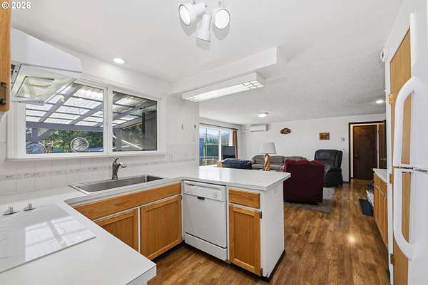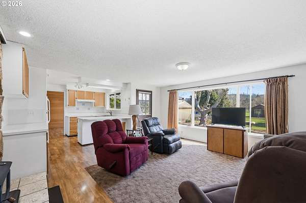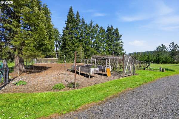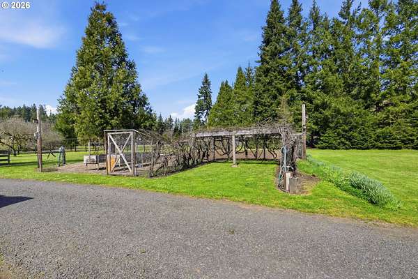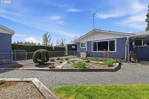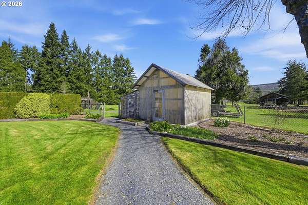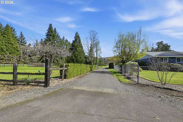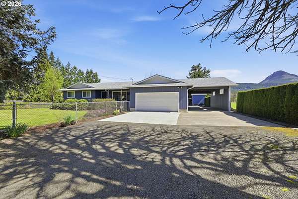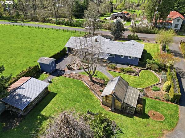 Welcome to your own slice of country living in Lost Creek Valley on 1.88 usable acres where open skies, peaceful surroundings, and room to grow create a lifestyle full of possibility. This single-level, 3-bedroom, 1.5-bath home offers a flexible layout with multiple living spaces, including a sunken living room and a separate living area featuring a Midgley's wood-burning fireplace insert set within a masonry fireplace designed for improved efficiency, along with large windows that bring in natural light and views of the surrounding landscape. Two mini-split heating and cooling systems provide efficient year-round comfort. The kitchen offers ample storage and workspace with an easy flow into the dining and additional living areas, ideal for both everyday living and gathering. An attached two-car garage with a large attic above provides excellent storage. Roof replaced approximately 7 years ago. Step outside and enjoy open usable land with mature landscaping including fuchsias, lilies, azaleas, and rhododendrons along with grapes, thornless blackberries, blueberries, apple and walnut trees, and asparagus. The setup is ideal for hobby farming, animals, gardening, or simply enjoying space to relax and play. Additional features include a covered 14x24 carport, 24x24 outbuilding, large greenhouse, and separate fruit room building. The property is fully fenced, with additional cyclone fencing enclosing portions of the yard. Septic tank has been rebuilt and is functioning as designed. Located near Dexter Reservoir and Lookout Point Lake for boating, fishing, and outdoor recreation and just minutes to Pleasant Hill schools with convenient access to Lowell, Fall Creek, Goshen, Creswell, and Eugene/Springfield. Situated in the 100-year flood zone, buyers must complete due diligence.