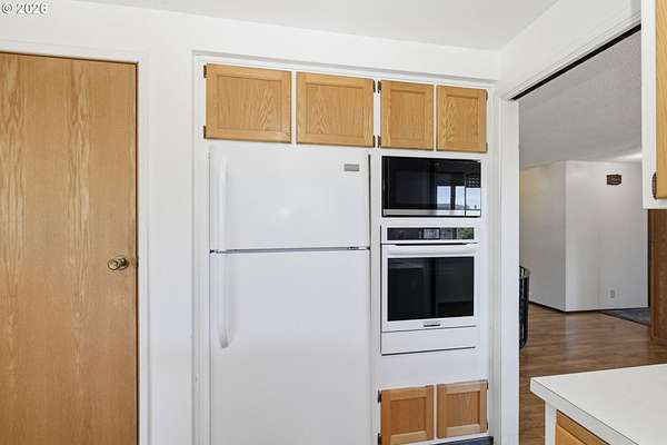 - Builtin Oven, Cooktop, Free Standing Refrigerator, Microwave, Range Hood