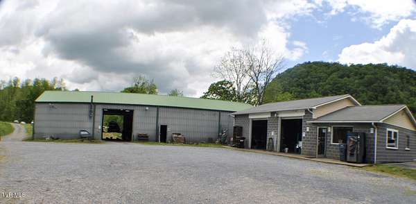 Beautiful 6.72 acres with fantastic views of Holston Mountain to the north and Unaka Mountain to the south There are two large industrial style buildings out front near the road. One has 1800 sq ft with concrete floors, two 12' x 12' overhead doors side by side and high ceilings, a security system, a heat pump and propane gas heat, a car lift, a full bath, a half bath, and two large offices. The other building has 4,000 sq ft with concrete floors, two 12' x 12' over head doors situated for drive thru the building convenience with 13 ft ceiling height. another car lift, security system. The remainder of the property lays very well and would lend itself to development. There appears to be room to build maybe ten houses. This place is about two miles above where the Elizabethton Airport is located near Stoney Creek. The vast possibilities are only limited by your imagination. Better hurry and come see it. It should not last long..