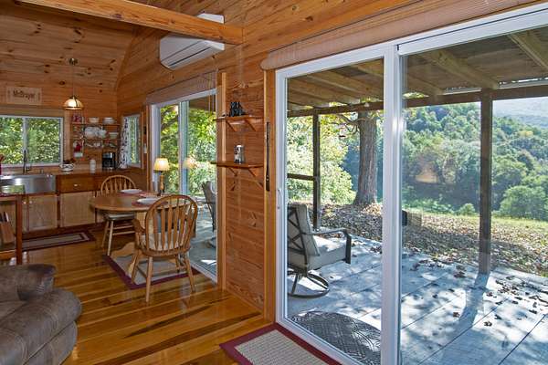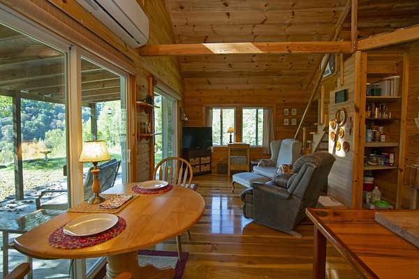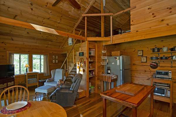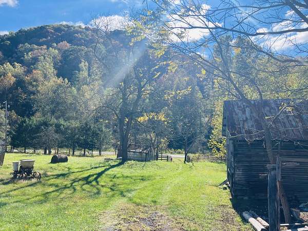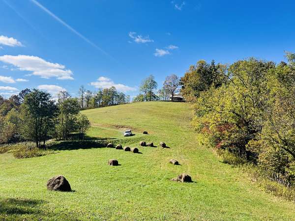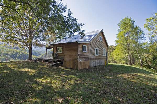 Locust Ridge Farm - Exceptional owner-built cabin on 32+/- secluded acres with dramatic mountain views. 2-bedroom, 1-bath, with beautiful handcrafted woodwork throughout. 10 acres of pasture, small orchard, 22 acres of woodlands, with several outbuildings and the Wiseman Branch of Rock Camp Creek running through the bottom corner of the property. This one-of-a-kind getaway cabin was lovingly constructed by a North Carolina couple as a mountain retreat and is turnkey. Perched on a hill in the Rock Camp community of Monroe County, the cabin offers total privacy, natural surroundings and a panoramic view of Peters Mountain from its covered front porch. A country road and a winding driveway lead to the cabin, tucked out of sight in a prominent hilltop setting. Simple in design, with cypress siding and a metal roof, the quaint structure features high-quality materials, thoughtful design, and economic use of space. The main section, best described as a mini-great room, combines living, kitchen and dining areas. Attractive poplar flooring is used here and throughout the cabin. All the interior walls, counters, cabinets, storage spaces and ceiling are natural wood (cypress, white pine, red oak and cherry), with virtually no painted or laminated surfaces or sheetrock. This extensive use of wood imparts a warm, cozy feeling. The eye-catching kitchen counters and butcherblock-style island table are treated with wood epoxy resin to resist mars and stains. There is a large stainless-steel farm sink. Appliances include a GE electric range and a Whirlpool refrigerator-freezer. The storage pantry is boxed in with cypress. A small covered side porch next to the kitchen connects to the laundry room, with an Admiral washer and GE dryer. The corner bedroom is divided from the bathroom by a barn-style sliding door, cleverly designed to serve two purposes. When closed, it provides privacy in the bathroom while simultaneously revealing a bedroom closet concealed behind it. The attractive handcrafted bed with built-in drawers conveys with the cabin. The adjacent bath features a walk-in shower and a vanity with a solid surface counter and sink. A staircase leads from the great room to a sleeping loft tucked above the primary bedroom and bath. This space incorporates built-in drawers and storage cabinets. The cabin's central heat and air conditioning are provided by a ductless mini-split system. Underground utilities serve the property. The rolling acreage is approximately 2/3 wooded with mixed hardwoods, and 1/3 pastureland. It includes 3 apple trees, 2 plum trees and a peach tree. There's a handy 12x12x10 storage building a few steps from the cabin, and a barn near the entrance to the property. A Massey Ferguson tractor with farm implements is negotiable with the sale. The location is approximately 15 minutes from the Monroe County seat of Union. Picturesque, bucolic Monroe County is comprised of small farming communities, and boasts the distinction of having no traffic lights in its entire 474 square miles. A wider array of shops and services can be found 45 minutes to the north in the Greenbrier County communities of Lewisburg, Ronceverte and White Sulphur Springs. This special cabin is a comfortable, picture-perfect retreat, enjoying an idyllic West Virginia country setting. Location 823 Pete Amos Road Lindside WV 24951 Monroe County Latitude: 37 degrees 29' 3" N Longitude: 80 degrees 35' 53" W Elevation: 2200 feet Schools: Mountain View Elementary School Mountain View Middle School James Monroe High School Home Information 1 Story w/sleeping loft Year Built: 2014 Total Square Feet: 696 Main Level Square Feet: 573 Loft Square Feet: 123 Total Rooms: 3 Total Bedrooms: 2 Full Bathrooms: 1 Lot: 32.01 acres Siding: Wood Foundation: Concrete Roof: Metal Floor: Hardwood HVAC: Electric Heat Pump Kitchen Countertops: Wood Utilities Water: Well Sewer: Septic Items to Convey: Refrigerator-Freezer, Electric Range, Washer, Dryer, Bed, All-Furnishings Negotiabl
