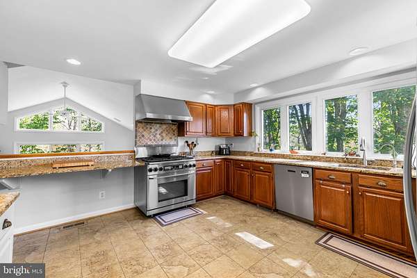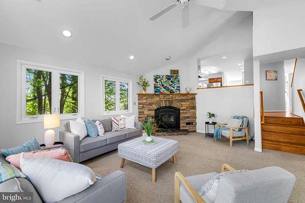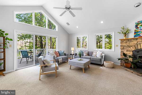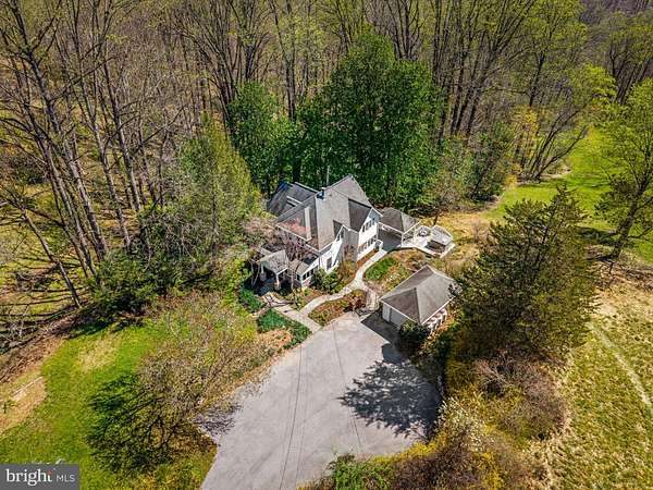 Your own private paradise on 16 acres, completely surrounded by nature's bounty. Beautiful Craftsman country home with a strong contemporary flare. Enter through the sunroom and into the living room, where you can cozy up in front of the propane fireplace on winter nights. The dining room offers views of the backyard and the door to the covered deck. The sunroom, living room, dining room, kitchen, and family room all flow together and make a wonderful place for guests to gather. The huge cook's kitchen has plenty of counters and cabinet space and a six-burner gas stove. The kitchen overlooks the open family room, with cathedral ceiling, huge windows, deck, and wood-burning fireplace. The main level also has a bedroom and a powder room. Upstairs are three more bedrooms and two full baths, including the primary bedroom with a dramatic cathedral ceiling, hardwood floor, walk-in closet, and in-suite bathroom with laundry. In this storybook home filled with windows, everywhere you turn in any room you can see trees, meadows, flowers, deer, foxes, wild turkeys, and more. The grounds of this magnificent private oasis include 11 acres of mature forest, a year-round spring-fed creek, an orchard of fruit trees and blueberries, a fenced vegetable garden, kitchen herb garden, year-round flower garden, and a private hiking trail. This is a retreat where you can get away from it all, but it is still conveniently located seconds from Patapsco State Park, 10 minutes from Ellicott City, 30 minutes from Baltimore, and 18 minutes to a Marc train park-and-ride.