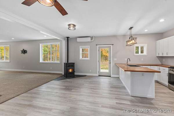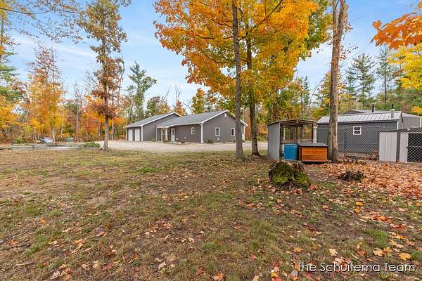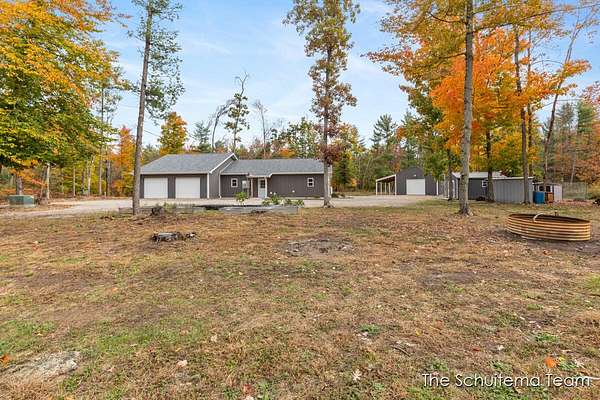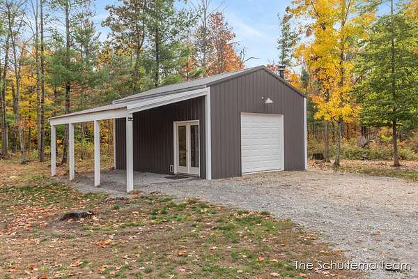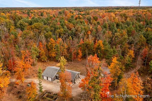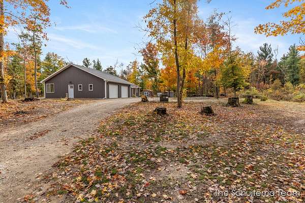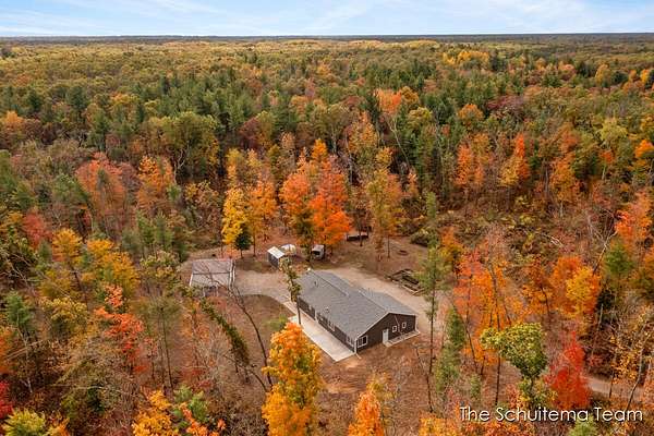Luxurious Modern Retreat on Nearly 20 Acres Discover this exquisite 2022-built home, enhanced with a 2025 addition, nestled on nearly 20 acres of pristine land with split potential (check with township). This 3-bedroom, 2-bathroom sanctuary offers all main-floor living with accessible features, soaring tall ceilings, energy-efficient mini splits, and a cozy pellet stove for ultimate comfort. Unwind on the expansive, hot tub-ready rear patio, perfect for entertaining or relaxation. Explore a scenic trail system winding through mature hardwoods, ideal for hunters or nature lovers. The property includes a spacious heated pole barn with lean-to and a large heated shed, perfect for hobbies or storage. Located near Cedar Creek ORV Trail and vast state land, endless outdoor adventures await. With premium finishes, modern amenities, and serene surroundings, this home delivers unparalleled tranquility and versatility. Don't miss this rare gem-schedule your visit today!