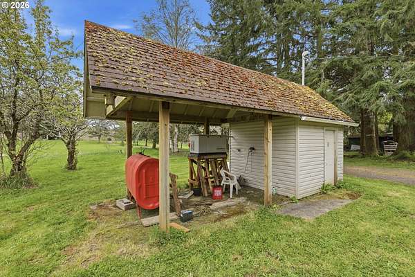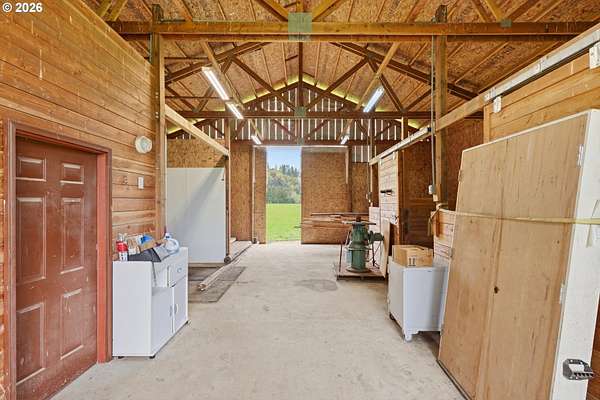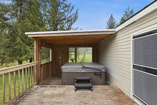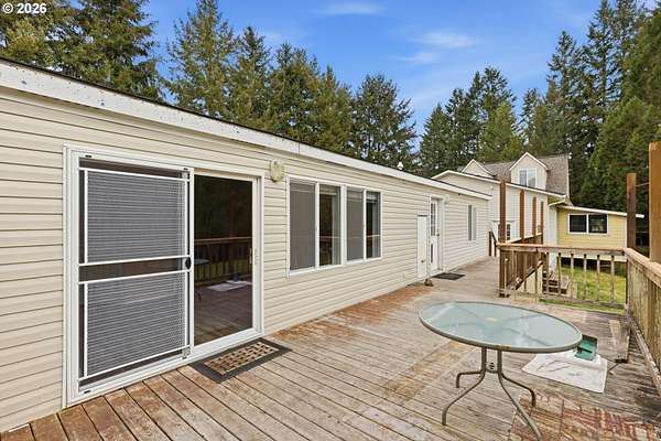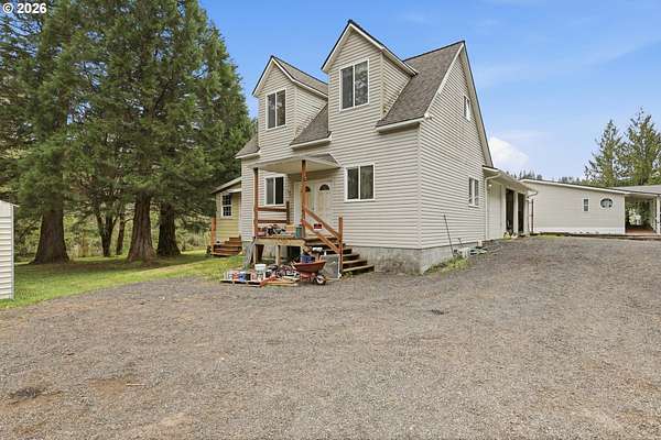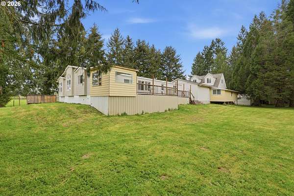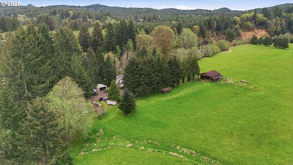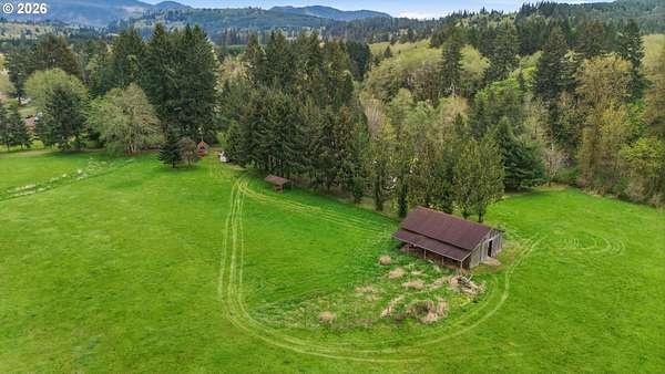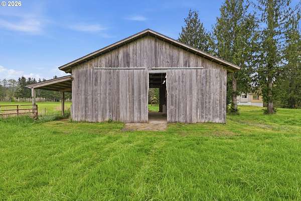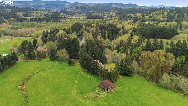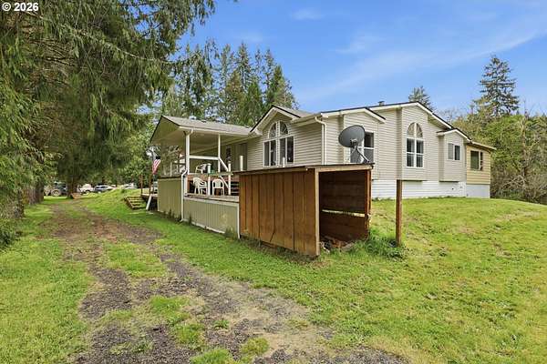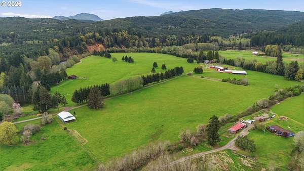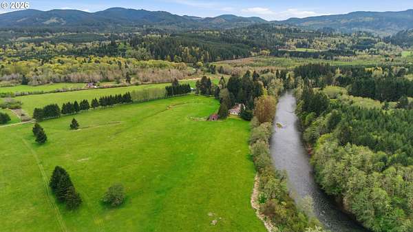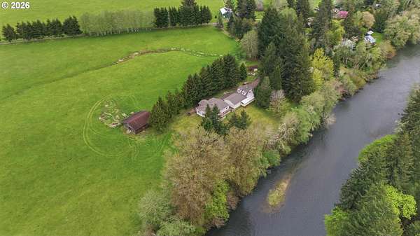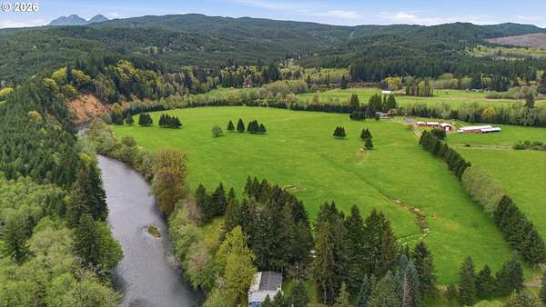 Incredibly serene 37.14 acre property, 3 bed 2 bath 2,254 sqft triple wide manufactured home with large covered front porch. Living room has vaulted ceilings, lots of windows and propane fireplace. Large kitchen with pantry, large bedrooms, primary bed with vaults, walk in closet and ensuite bath with oversized soaker tub, and stand up shower. Seller has new shower base purchased and never installed if someone wanted to remodel primary bath. Slider from dining room to back deck with enclosure around hot tub. Hot tub is newer but has a small leak believed to be around one of the jets. House has full house Generac generator and propane tankless hot water heater. Outbuildings included; 3 stall horse barn with hot and cold water wash stall, hay storage, office/tack room with toilet. 3 car detached Garage is wired 220 with both 220 and 20 amp outlets and wired relay for exterior lights so if there is motion all lights come on. 2 story attached workshop below with studio above with full bath and beautiful hardwood floors from the over 100 year old grange when it was taken down. Buyer to do their own due diligence on the workshop/studio being used as an ADU.Well pump house with backup generator. 40x60 shopLarge wood shed that could be used for boat storageWood shedUtility shed2 car metal car port. Roof on house and 3 car garage new in 2020 with transferrable warranty. Property has 1,000 ft of Nehalem river frontage, stairs down to the river have been started. 32.14 acres in tax deferral and have been hayed for years there is no present lease or contract so that new owner has no immediate obligation. Seller has contacts if new owner would like to engage with someone interested in haying the property. Propane tank is rented, diesel tank is owned. 3 California redwoods, Alder, Fir, Redwood, Cedar, Pear and Apple trees. Wildlife including elk herd that frequent the property.