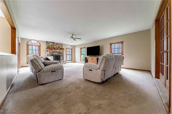 Welcome home to this beautifully designed 4-bedroom, 2.5-bath residence tucked away on just over 5 private acres at the end of a quiet cul-de-sac in the desirable Whispering Pines community. Step inside to a dramatic two-story foyer filled with natural light, flanked by formal living and dining rooms - perfect for entertaining. The spacious great room showcases a stunning stone fireplace and flows seamlessly into the chef's eat-in kitchen, complete with granite countertops, ample cabinetry, and stainless steel appliances. The main level also offers a versatile office or potential bedroom, a generously sized laundry room, and access to the attached 3-car garage. Upstairs, the expansive primary suite features a glamour bath and a large walk-in closet. Three additional bedrooms and a full bath provide plenty of space, along with a sizable bonus room ideal for storage, a home gym, media room, or whatever suits your needs. Enjoy the peace and privacy of over 5 acres while still benefiting from city sewer-an exceptional combination. Notable updates include a Kinetico Water Softener System (2024), Heat Pump Furnace & AC (2024), Sump Pump w/ Backup Pump (2025), and an updated electrical panel (2025). Don't miss out, schedule your showing today!