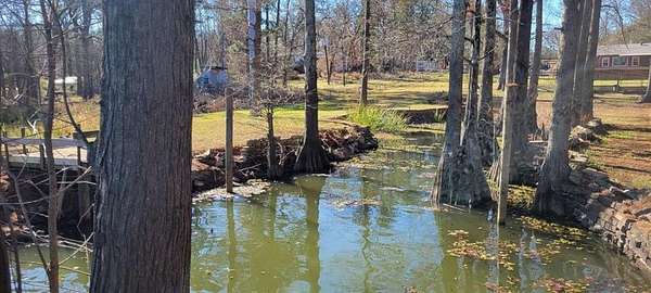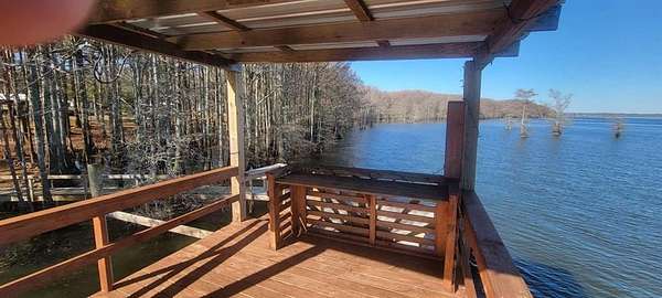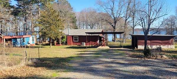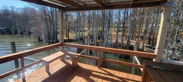 Est $1,783/mo2 ACRE OPEN LAKE FRONTAGE, 2 secluded points with inlet - Main House has 2 bedrooms and two bathrooms with large great room, kitchen area and large back deck overlooking Caddo Lake. Separate Cottage with outside shower and 1 bathroom-kitchenette. Also, has a Fish Shack and covered deck. Separate open 2 car carport and work area. Newly constructed Two-Story Pier with slip for Party Barge which maybe moored in inlet during bad weather.