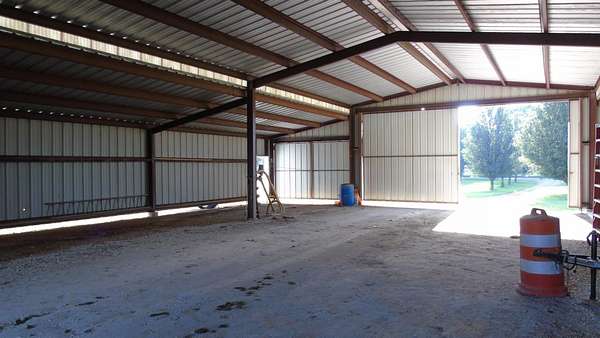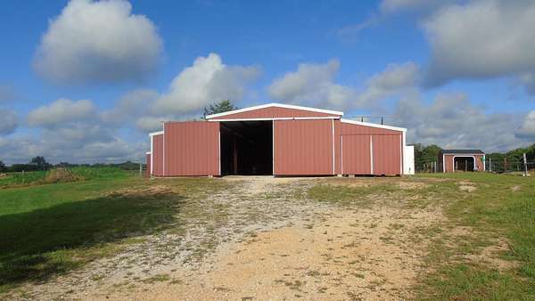 Est $1,536/moBring the HORSES! Customize large building for your own bardominium. 5.5 ACRES of level land with plenty of room to build. Fenced pastures for livestock. 58 x 75 Metal barn with 24 x 24 side covered additional shed. Barn has a partial concrete slab (14 x 25). 2 Large sliding doors for easy access. Store your farm toys inside or your ATV. Design your 4350 Sq Feet for living space! Possibilities are endless. Tree lined driveway.