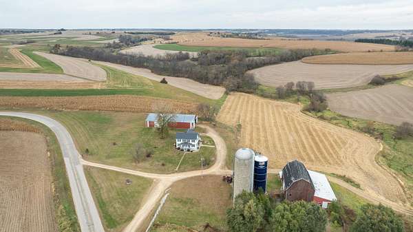 A rare opportunity to own a Sesquicentennial Farm spanning 280+ acres in beautiful Lafayette County! This multigenerational property offers 225 acres of tillable ground, approximately 1.5 miles of Copper Creek frontage(Class 2 Trout Stream), nearly 1.25 miles of Pecatonica River frontage, a natural spring and touches the Cheese Country ATV trail. Property includes a 54x98 machine shed, barn, silos/harvesters, and a charming 5 bedroom, 1 bathroom farmhouse with hardwood floors and stunning craftsmanship. Put your mark on this already outstanding property with multiple picturesque building site locations. A true legacy property, ideal for farming, recreation, or building your dream country estate.