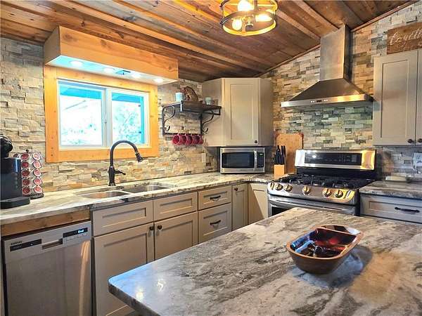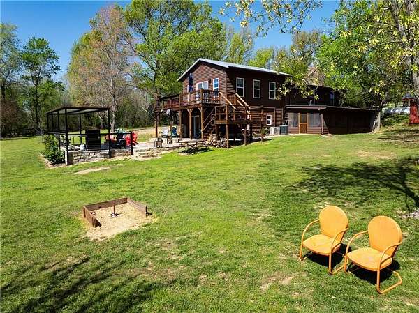 One-of-a-kind Kings River oasis! This home is full of rustic and charming features and sits on 5 park like acres that lead gently down to 250 feet of Kings River frontage with easy access! Relax and unwind from your balcony with a view, down by the river's edge, or as you sit around the firepit on a natural stone patio with a partially covered area for grilling. Invite your friends over for kayaking, a round of frisbee golf or horseshoes! The possibilities are endless with potential to be amazing primary home, vacation getaway, hobby farm, or income producing property. Inside the home you will find 3 bedrooms, 2 baths, 2 large living spaces, a wood burning fireplace in the main living room, wood accents throughout, a bright kitchen with granite countertops, stone backsplash to the ceiling, and stainless appliances, a laundry room on each level, a primary bedroom with a gas log fireplace, screened in porch, and so much more! Private well. Contents negotiable. This is a must see, one of kind, property!