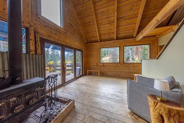 Laurel Walker, Premier Mountain Properties - CB, C: 970-275-9567, laurelisinthehouse@gmail.com, www.crestedbutterealestatewithlaurel.com: Looking for a cabin in the woods close to the town of Crested Butte. Discover this remote off-grid cabin in the Irwin Townsite, situated on nearly 2 acres. Nestled among towering pine trees and flanked by a serene creek, this 2-bedroom, 2-bathroom home offers a large south-facing deck perfect for year-round gatherings with family and friends. Enjoy summer days by the bubbling creek or winter adventures snowmobiling and skiing in the surrounding mountains. The cabin is designed to maximize natural light with large windows that seamlessly connect indoor spaces to the beauty of nature. This property features a solar panel system and a 1,000-gallon water storage tank, ensuring sustainability while providing essential amenities. With established internet service available, you can stay connected when needed. Located less than half a mile from Lake Irwin, this cabin serves as an ideal base for outdoor enthusiasts looking to explore mountain biking trails or enjoy paddle boarding and fishing. The inviting atmosphere and picturesque surroundings make it a place you will never want to leave. Schedule your visit today to experience the allure of this unique home.