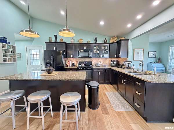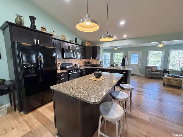 Thoughtfully designed by the current owner, you'll find absolute tranquility on this lovely 5 acres! Built in 2013 & updated in 2023, this 3BR, 2.5BA home has gorgeous maple HW flrs throughout the open and vaulted main living space, walk in pantry, main flr laundry & sunroom! Kitchen boasts quartz counters, soft close cabinets, touch faucet, pullouts in lowers. Anderson windows let in extensive light and all doorways are 36". Primary suite w/ both a walk-in shower & stand alone tub, plus a walk-in closet. Enjoy the composite back deck, covered for relaxing at its finest! Outdoor spaces include partially fenced yard, add. detached 2.5c garage with electric and an 8x12 shed with a poured concrete floor. Pick from the asparagus patch, concord grape arbor, peach tree or watch the hummingbirds as they come and go! Previously home to Bad Wolf Pottery shop, the spacious and completely private walkout lower level could be used for a variety of things--think salon, in-home daycare, small retail shop, homeschool space--or add a kitchen and shower to the existing bathroom and have private living space. Extra features include a safe room/storm shelter, hardwired smoke detectors, reverse osmosis water softener & Generac back up generator. Roof new in August of 2023 & hot water heater new in February 2024. On septic and well; electric and propane avg $224/mo. Farmer tills about 2 acres. Square footage believed to be accurate, but is not warranted.