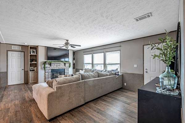 Est $1,533/moWell-maintained mobile home built in 2019, offering 4 spacious bedrooms and 2 full bathrooms. Situated on 2 acres with a Metal roof, the property includes a private water well and an RV connection for added convenience. A storage shed with washer and dryer connections is also on-site. This property combines comfortable living with plenty of space and functionality, ideal for those seeking room to grow and enjoy country-style living..