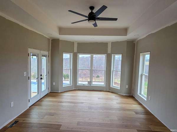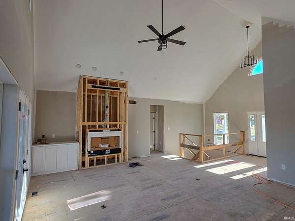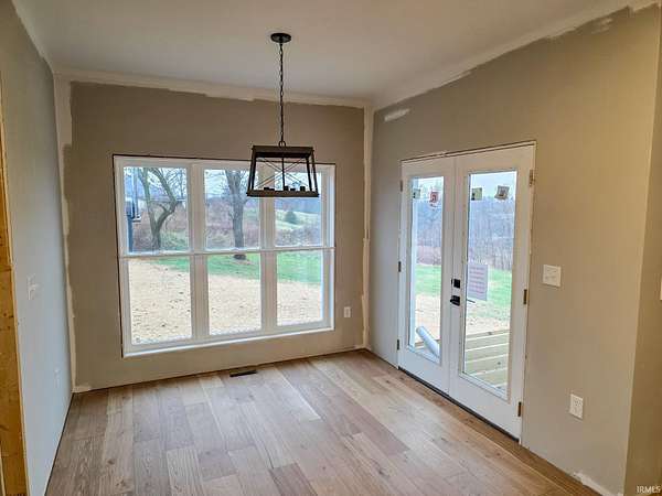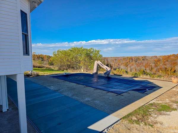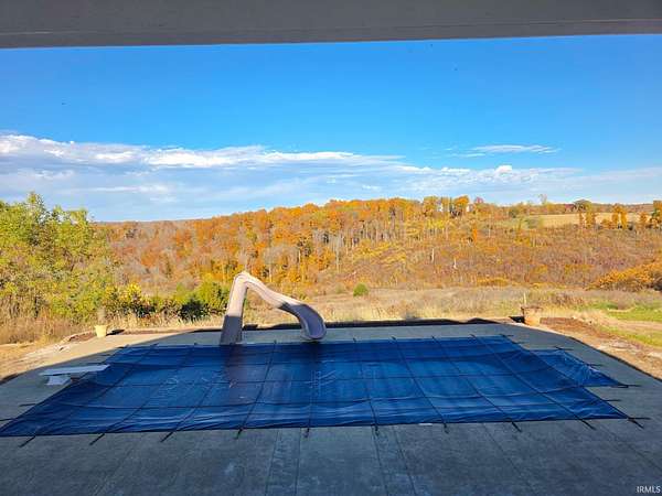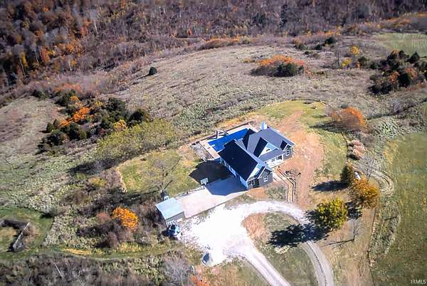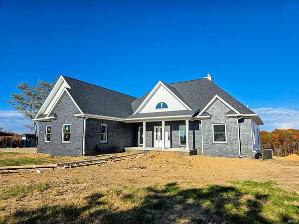 This is new construction which should be finished in late January or early February (the new home is being built over an existing foundation). This is a very good quality custom-built ranch over a finished walk-out basement and is situated on 25 Acres in Greene County with an inground pool. The view is truly amazing and the home sits back off the road. It is only a 25-to-30-minute drive to downtown Bloomington and Indiana University. The soaring ceilings in the Great Room are amazing! The view off the rear-covered porch on the main level is breath taking! On the main floor, you'll find the large Primary Bedroom, while the walk-out basement includes two more Bedrooms along with a Den or Study and two Full Bathrooms. The main level floors are good quality engineered hardwood along with tile in the bathrooms, and the lower-level basement floors are all Luxury Vinyl Plank. The Great Room fireplace features black tile facing, a timeless yet modern option that brings an element of elegance and turns the fireplace into the into the room's centerpiece. The outdoor wood-fired boiler has been pre-plumbed on the inside the house.