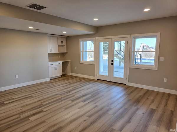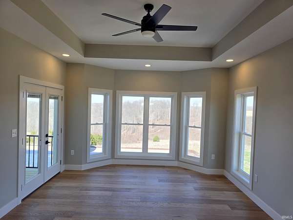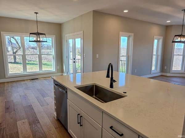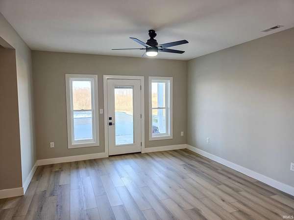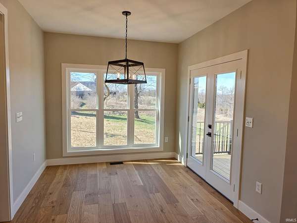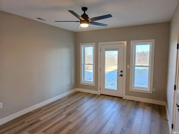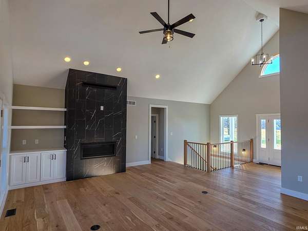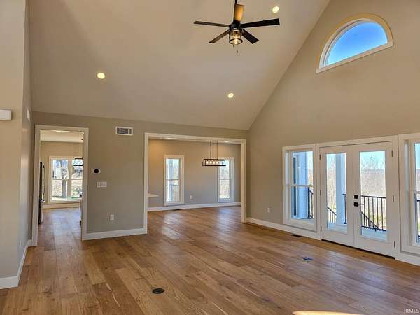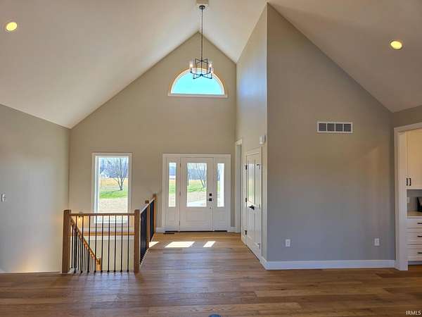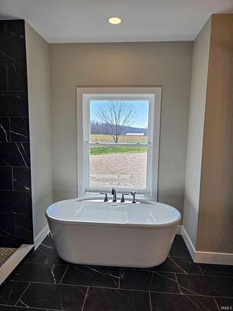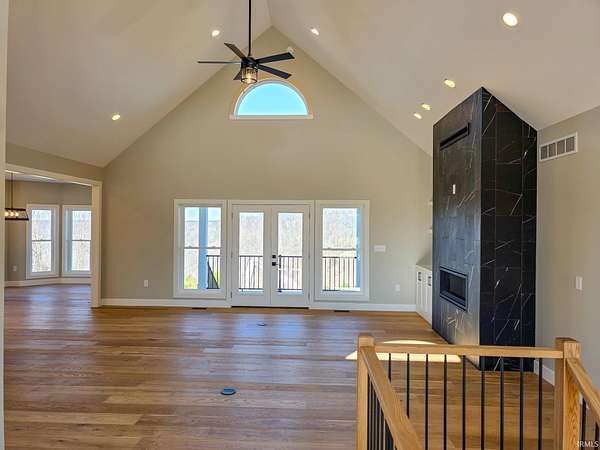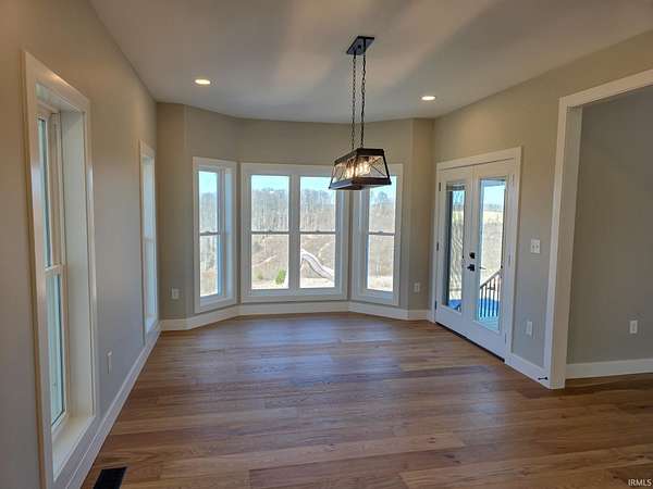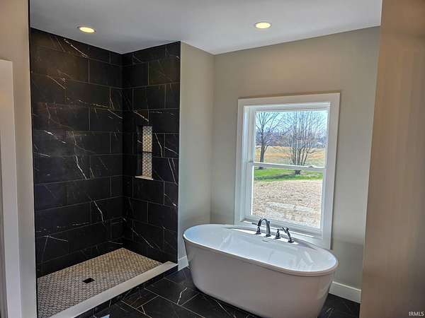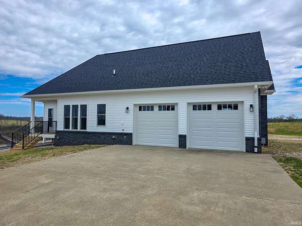This is new construction which should be finished in late January or early February (the new home is being built over an existing foundation). This is a very good quality custom-built ranch over a finished walk-out basement and is situated on 25 Acres in Greene County with an inground pool. The view is truly amazing and the home sits back off the road. It is only a 25-to-30-minute drive to downtown Bloomington and Indiana University. The soaring ceilings in the Great Room are amazing! The view off the rear-covered porch on the main level is breath taking! On the main floor, you'll find the large Primary Bedroom, while the walk-out basement includes two more Bedrooms along with a Den or Study and two Full Bathrooms. The main level floors are good quality engineered hardwood along with tile in the bathrooms, and the lower-level basement floors are all Luxury Vinyl Plank. The Great Room fireplace features black tile facing, a timeless yet modern option that brings an element of elegance and turns the fireplace into the into the room’s centerpiece. The outdoor wood-fired boiler has been pre-plumbed on the inside the house.