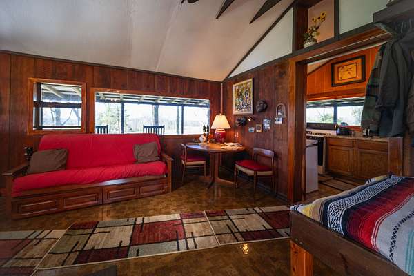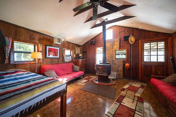 - Infrastructure: A charming, frontier-style cabin (built in 1977) featuring wrap-around covered porches on three sides.
