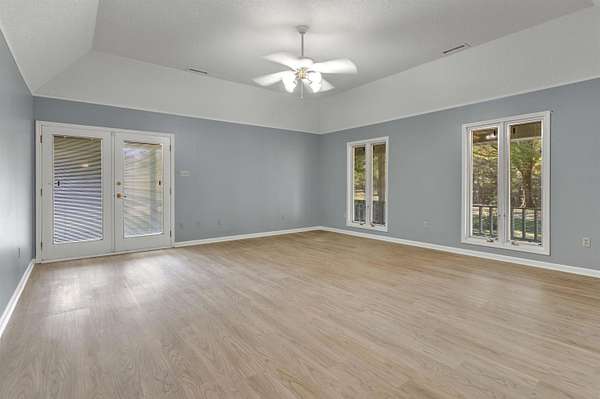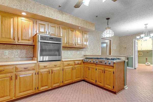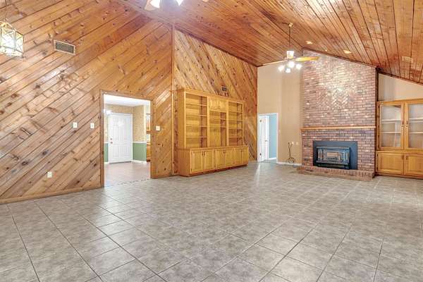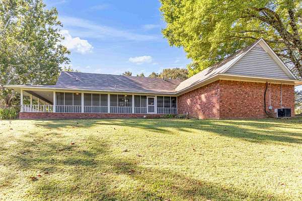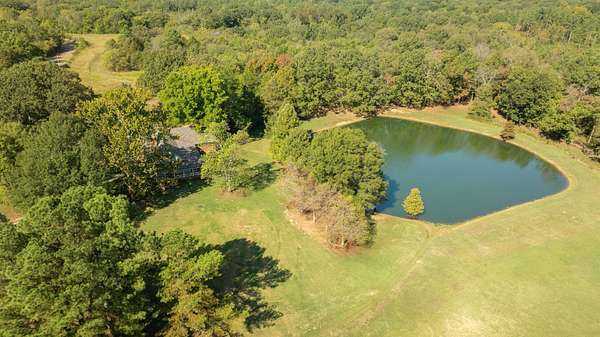 A rare 5-acre retreat offering space, serenity, & standout outdoor living--this Fayette County gem is your perfect escape. The 3BR/2.5BA home features a custom great room with soaring 10'+ ceilings, cedar wall and ceiling accents, a cozy wood stove insert, built-in bookcases, and a wet bar for entertaining. The kitchen is a chef's dream with updated stainless appliances and a JennAir 6-eye gas cooktop. A spacious laundry room offers ample storage, & there's a dedicated office for work or hobbies. All bedrooms are generously sized, with the primary suite featuring two walk-in closets. A wraparound porch spans three sides with doors on all three sides providing easy access to all three areas. The back portion is screened-in & overlooks your private 1-acre pond. The pond features a beautiful fountain & a sturdy dock for fishing convenience when trying to reel in a monster bass, catfish, brim or crappie! Very spacious attached garage adds wonderful convenience & vehicle maintenance.