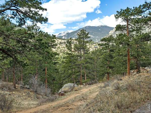 Est $2,571/moR2 zoned Lot in Estes Park! 2.8 Acres with views to the snow capped peaks and great building sites. Paid water and sewer taps. Gentle slope with driveway already cut-in and potential building site started. Awesome pine trees and rock formations. Zoning allows for a duplex or it's a great site for your estate home, with nice privacy and access off Castle Mountain Road. A rare offering indeed, at $325,000.