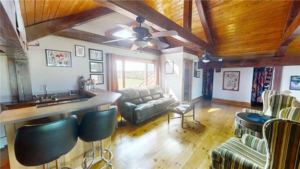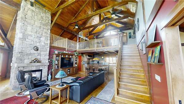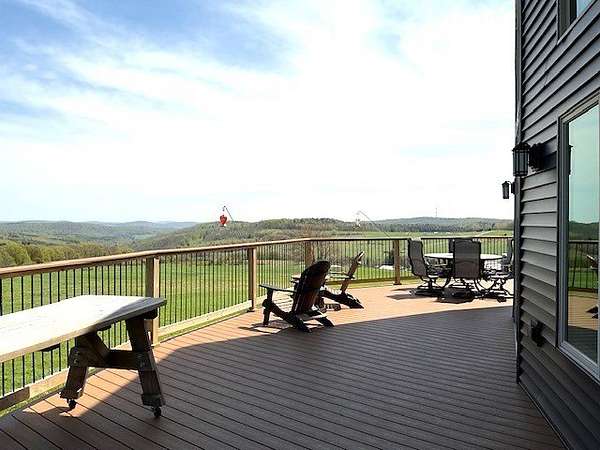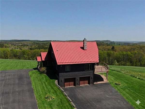 Top-of-the-World Living with Breathtaking Views - stunning panoramic views stretch as far as the eye can see. This extraordinary retreat is perched on 24.40 scenic acres, and situated between Norwich & New Berlin, NY for easy access to the amenities of both Chenango and Otsego Counties. Built in 2010 with high-quality craftsmanship and thoughtful design, this 3,000 sq ft home offers the perfect balance of elegance, comfort, and functionality. Soaring cathedral ceilings and floor-to-ceiling windows fill the home with incredible natural light - this setting provides a true appreciation the change in seasonal views and also the ever-changing daily landscape. The chef-grade kitchen is a dream for culinary enthusiasts, opening seamlessly into the main living space anchored by a dramatic two-story stone hearth and a double-sided gas fireplace-perfect for cozy gatherings and quiet evenings. With three spacious bedrooms, three full baths, and a half bath, there's privacy and room for everyone. The private primary suite offers a peaceful escape and beautiful custom tile full bath. The walk-out lower level features a large family room, additional bedroom, and full bath-ideal for guests or multigenerational living. A dedicated office space on the main floor provides the flexibility to work from home - hard to find stress overlooking the world below. Step outside to enjoy the brand-new expansive Trex deck, ideal for entertaining or simply soaking in the peaceful surroundings. Additional highlights and updates include a new 1,200' paved driveway and new exterior siding and insulation. Oversized two-bay garage and separate storage shed for vehicles and toys. This property borders NY State land and offers direct access to the 1,666 acre Skinner Hill State Forest - please refer to the following link for more specific info on the Skinner Hill State Forest: . Experience peace, privacy, and unparalleled views at the top of the world - this is more than a home, it's a lifestyle. The interior 3D Tour can be viewed below: . Awesome House, Amazing Setting!