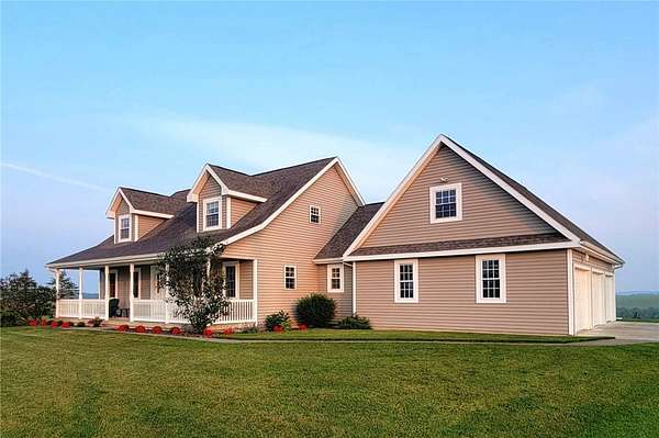 Own a home that feels like a vacation getaway, only 10 minutes from Corning and 15 minutes from Elmira! This custom-built, one-owner cape-cod sits on top of 35 acres and is "park-like" in appearance with a very private back yard, open fields, trails, wildlife, woods with a stream, gorgeous valley views, & a pond with a "beach area" for relaxing/wading. Its hilltop position keeps it in the morning sunshine above the valley fog, & it affords an almost 360-degree view of the sky for nighttime astronomy. The house is also a gem - beautifully maintained w an open-concept living room, dining room & kitchen, and an attached 3-car garage w a mudroom entrance leading directly into the kitchen. Designed for functionality, easy upkeep & one-level living. The 1st floor includes the primary bedroom, a second room that can be an office or bedroom, a third room that can be a den or an additional 5th bedroom, & a sound-insulated laundry room. It has 6" outside walls & weather-star-rated windows. The oversized garage with space above reduces the need for a shed, & numerous closets provide plenty of storage. The covered front & back porches provide protection, & face east & west, enabling views of both sunrise & sunset. The unique bathrooms have separate toilets & showers & single sinks enable extra drawers. The primary bedroom en-suite also has a separate door into the main living area to serve as the powder room for guests, reducing the number of bathrooms to be maintained. A raised bed garden is ready for fresh vegetables to be grown.The basement has been intentionally left unfinished to serve as an inclement-weather recreation area.There's even a sauna w a beach scene mural for a virtual getaway. Numerous new updates include:Pressure Tank Jun '13; Roof Aug '15; LG Washing machine Mar '15 and Dryer Jul '16; Submersible well pump Sept '16; Bosch dishwasher Feb '17; Owned Culligan water softener Mar '17; Whirlpool Refrigerator Sept '17; Kitchen floor refinished Oct '17; Sauna Nov '18; Bosch Combi Boiler- on-demand hot water Aug '20; GE Microwave Nov '20; Kitchen Aid Double Oven Range Aug '22. **There is an Accepted offer with a sale contingency until 12/20/2025. 3 day kickout.