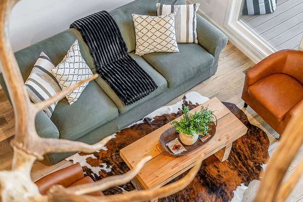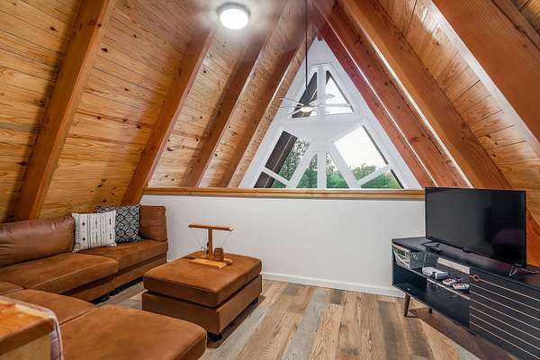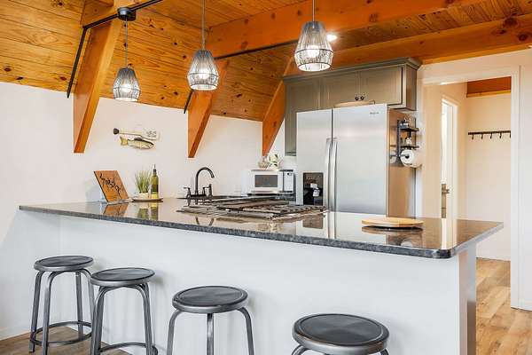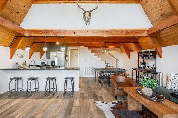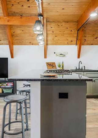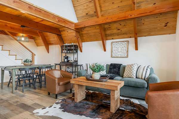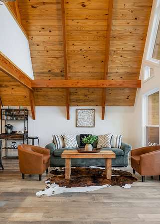 Upstairs you'll find a spacious loft-style entertaining area overlooking the main living room along with a hideaway bunk, half bath and gorgeous private bedroom with private balcony. Perfect to entertain friends and family.