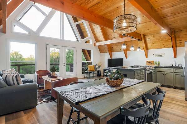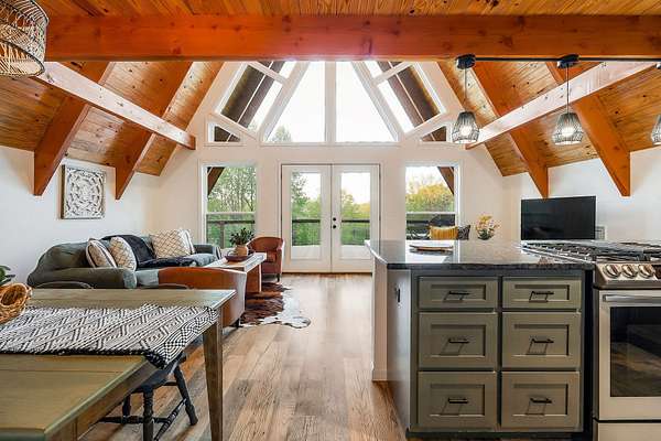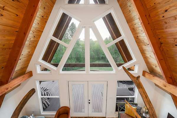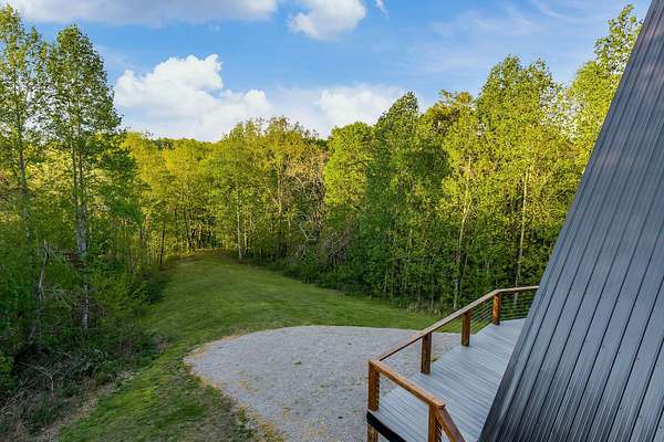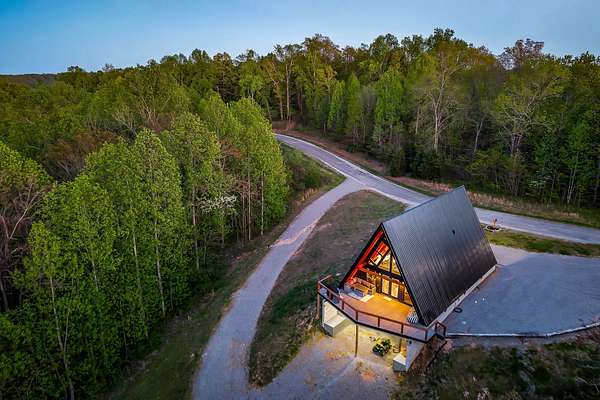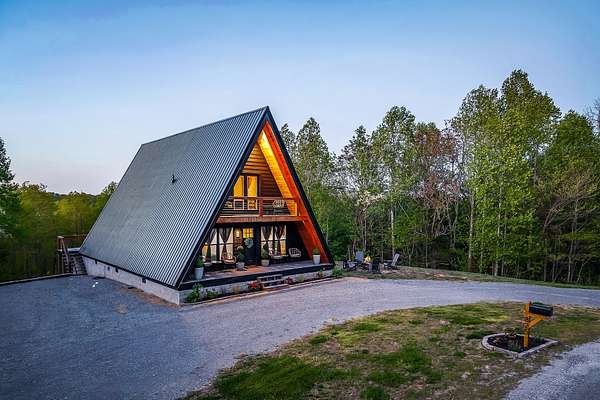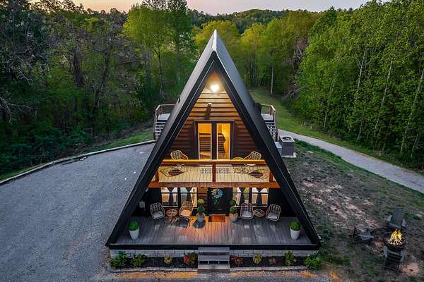 ESCAPE to your DREAM RETREAT with this beautifully crafted A-frame cabin nestled near the shores of Center Hill Lake. Custom-built with a modern luxe lodge experience in mind, this 3-bedroom 1.5-bath cabin offers the perfect blend of rustic charm and modern convenience creating the serene sense of hygge. Step inside to find an inviting open-concept living space with soaring vaulted ceilings, warm wood textures and oversized windows that fill the home with natural light and showcase the stunning views of surrounding woods.The quaint gourmet kitchen features custom cabinetry, gas range, black granite countertops and flows seamlessly into the dining and living areas -- perfect for cozy nights or entertaining guests.
