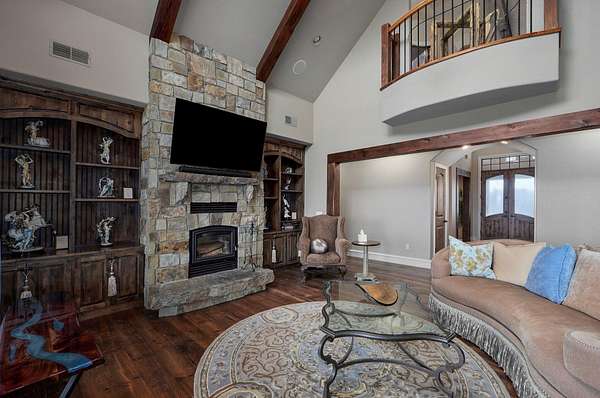 Est $6,615/moThis is a stunning custom home built by Tom Caruso! It sits on 15.59 rolling acres with breathtaking views. The numerous windows let you have a lot of natural light and enjoy the beautiful views of the Ozarks from inside your home. The neighborhood is gated and extremely private. The kitchen has custom cabinets and built in professional appliances. There is a pavilion with fruit trees nearby perfect for entertaining friends and family. The custom built treehouse is an added bonus that the kiddos will enjoy. New roof installed October of 2025. Access road recently resurfaced from gate to gate.