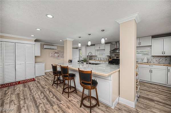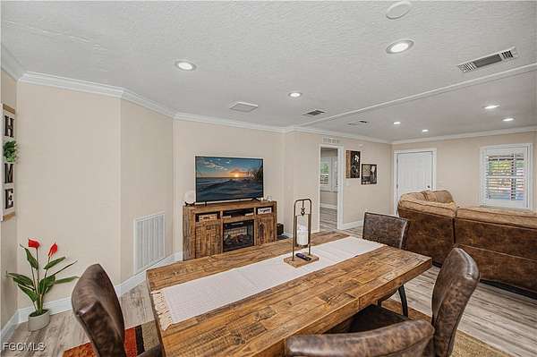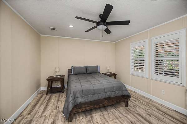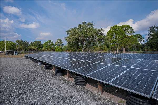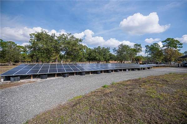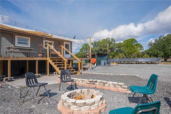 Fully remodeled 4-bedroom, 2-bath home on 2.5 fully fenced acres with electric gated entry. This 2,000 sq ft under-air residence features updated floors, baseboards, kitchen, baths, molding, knockdown finishes, and a metal roof. Enjoy a large front deck and covered rear porch with retractable awnings. The primary suite includes a mini-split and built-in home theater, and the kitchen has its own dedicated mini-split for efficient zoned comfort. Energy infrastructure supports true self-sufficiency, including fully paid solar, a whole-home generator with automatic transfer switch, hurricane panels for all windows, well and septic systems, full-property irrigation, concrete stucco exterior, and an integrated security system. The property includes a 20' x 40' climate-controlled mechanic's workshop with high ceilings, roll-up access, lighting, workbenches, shelving, and dedicated electrical, ideal for vehicles, equipment, or serious hobby use. Adjacent is a converted 8' x 40' steel shipping container intended as guest space or emergency shelter, featuring a kitchenette, sleeping area, full bath, and its own mini-split. Located in Montura, a rural community known for space and minimal restrictions, this property offers rare flexibility for equipment, projects, animals, or future expansion.