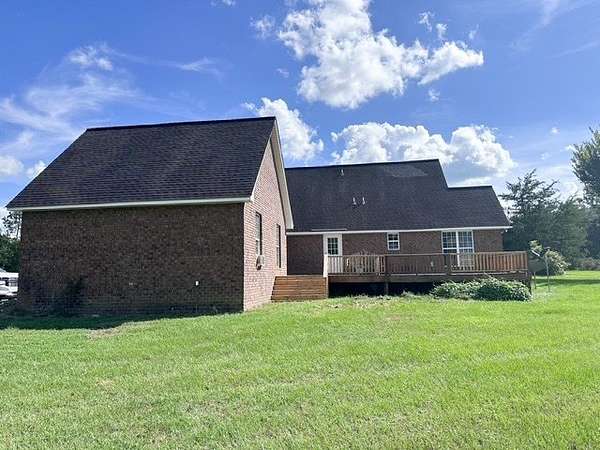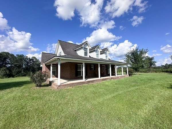 Welcome to this charming 1651 sq ft brick home set on 4 beautiful acres, offering the perfect blend of space, comfort, and privacy. The inviting partial wraparound front porch and back deck are ideal for enjoying the outdoors, while the 2-car garage provides plenty of storage and convenience. Inside, you'll find a bright and open two-story living, kitchen, and dining area designed for modern living. The den features a cozy gas log fireplace, and the kitchen comes equipped with sleek stainless appliances and new quartz counters. The main level boasts a spacious master suite with a walk-in closet and private bath, along with a guest bedroom and an additional full hall bath. Upstairs, a bonus bedroom with its own full bath offers flexibility for guests, a home office, or recreation space. This property combines the warmth of country living with modern amenities. Call Sara at 912-293-2225 to schedule a private showing.