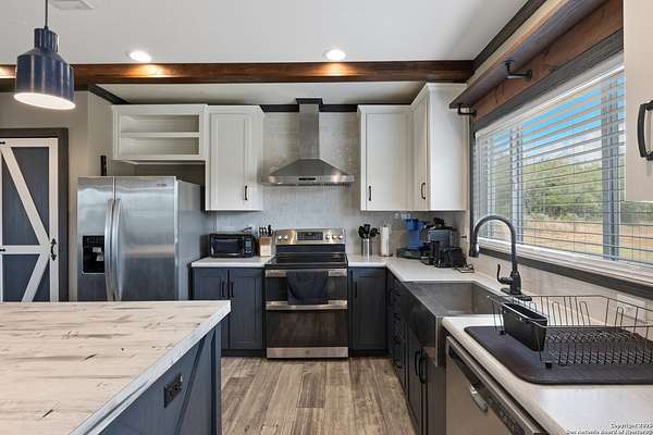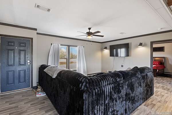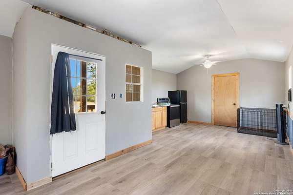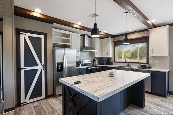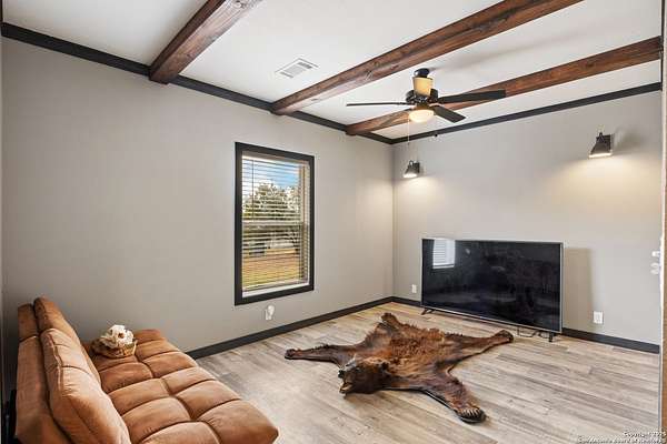 Welcome to your own 15.3-acre unrestricted retreat just 35 minutes from Downtown San Antonio. With city utilities in place, a private water well, and septic system, this property is ready for your vision! Whether it's multigenerational living, a homestead, or a weekend ranch. The main home, built in 2022, is a like-new 4 bed / 2 bath with modern finishes throughout. A separate renovated 500 sq ft cabin/casita provides the perfect guest house, MIL suite, or teen space. A carport serves both dwellings. Enjoy a pond site previously stocked and fished, abundant wildlife including deer and doves, and plenty of room to add a barn, workshop, RV hookups, or additional homes. With no restrictions or HOA, the possibilities are endless. This is the perfect blend of privacy, freedom, and proximity to the city. A truly one of a kind property and HIDDEN OASIS! Schedule a tour today!