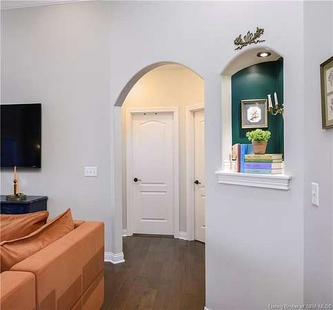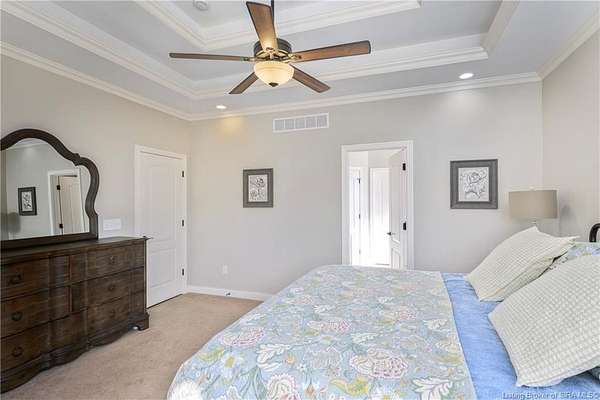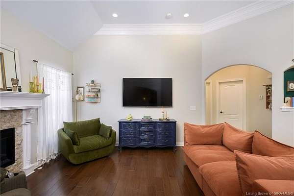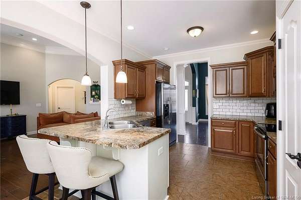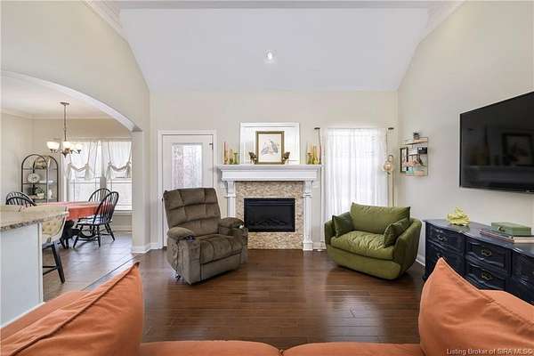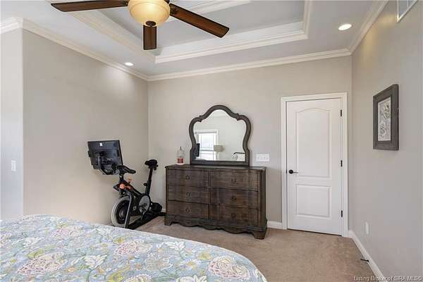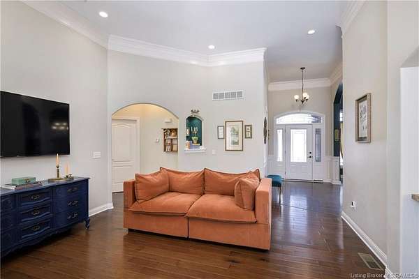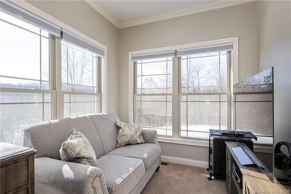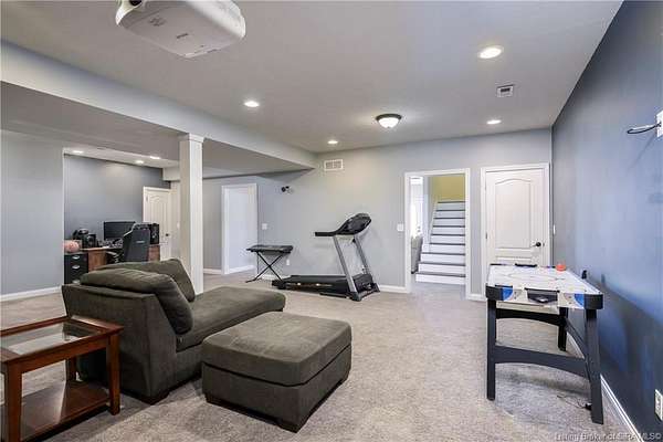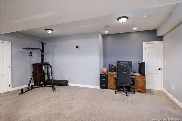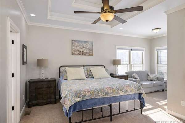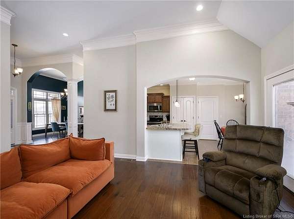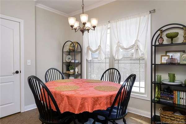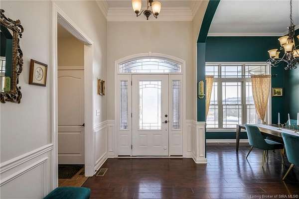 This gorgeous custom-built brick home sits on 3.26 acres and overlooks the scenic Borden Valley in beautiful Southern Indiana. This property features a 30x48 detached 3-bay garage, a full walk-out basement and has tons of extra features throughout like crown molding, arched entryways, and 10-12 foot ceilings. You will love the spacious primary bedroom with tray ceiling, an extra sitting area, walk-in closet, and beautiful en-suite bathroom, all conveniently located on the main level. The main level of this home also features an electric fireplace, a formal dining area, an amazing eat-in kitchen with pantry, first floor laundry room, 2 additional bedrooms and another full bathroom. When you step into the basement, you will find 10-foot ceilings, an additional bedroom, a full bathroom, extra storage, and plenty of extra space for your hobbies, games, and entertaining. The basement has also been plumbed for a wet-bar. All kitchen appliances remain including the washer and dryer, making this home truly move-in ready. The above-ground pool was installed by Backyard Staycations in 2023. Enjoy evenings on the back deck amidst an abundance of wildlife such as wild turkey and deer while admiring the quiet and peaceful views of the beautiful hillside and valley. Located only minutes to popular local coffee shop and diner, as well as minutes from the Monon Walking and Biking Trails and also conveniently located less than 20 minutes to Salem, New Albany and Sellersburg.