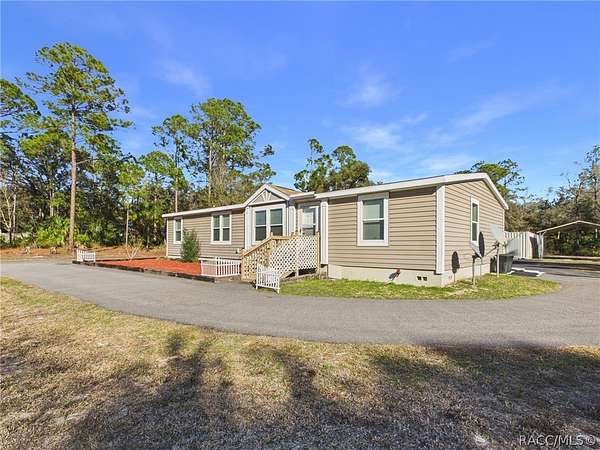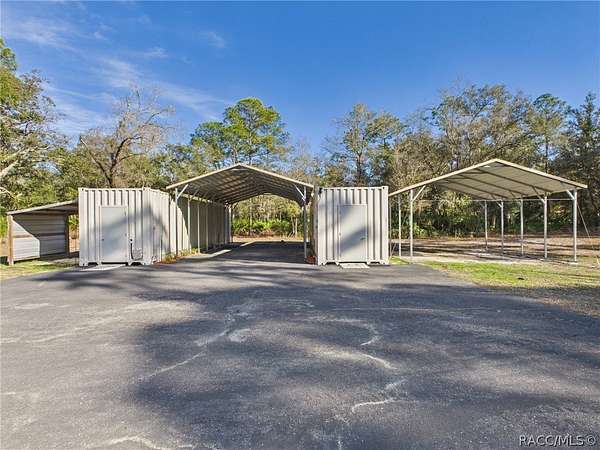 Discover the ideal balance of privacy, functionality, and convenience with this beautifully custom-built 3-bedroom, 2-bath residence situated on more than 16 acres. Approximately 13 acres are wooded with mature pines-ready for harvesting or maintained to preserve the current agricultural exemption they provide. Positioned at the end of a quiet cul-de-sac, this property offers the perfect setting to raise a family, establish a mini-farm, or simply enjoy wide-open space with no deed restrictions. Thoughtfully designed with attention to detail, the home features 1,800 square feet of living area and a desirable split floor plan. The spacious great room flows seamlessly into the dining area, creating an inviting layout for both daily living and entertaining. Two guest bedrooms each include walk-in closets, and the guest bath features a tub/shower combination. The generously sized primary suite accommodates large furnishings and includes a substantial walk-in closet, dual vanities, and a walk-in separate shower. Exterior features are equally impressive. A circular driveway welcomes you at the front of the home, while an extended drive leads to the backyard, where you'll find a 20x40 carport tall enough to accommodate a motorhome, and a 20x20 carport. Two 45-foot shipping containers provide extensive additional storage. The A/C system was replaced in 2025. For added security and comfort, the home is equipped with a whole-house generator and a whole-home water conditioning system, delivering high-quality water sourced from Florida's aquifer. Nature enthusiasts will appreciate the abundant wildlife, including deer and turkeys, that frequent the property. This private retreat offers exceptional seclusion while remaining conveniently close to town amenities and nearby beaches. Living in Crystal River means embracing Florida's renowned Nature Coast lifestyle. Spend your days fishing in the Gulf, scalloping in season, or launching your boat from one of the many public ramps along the Crystal River and the Homosassa River. Explore the natural springs at Three Sisters Springs, kayak through clear waterways, or enjoy waterfront dining after a day on the water. At the same time, the heart of Citrus County continues to experience steady commercial growth, bringing expanded shopping, dining, medical facilities, and national retailers to the area-allowing you to enjoy rural tranquility without sacrificing modern conveniences. This is a rare opportunity to own versatile acreage with natural beauty and long-term flexibility-refined country living with room to roam, paired with the very best of Florida's outdoor lifestyle.