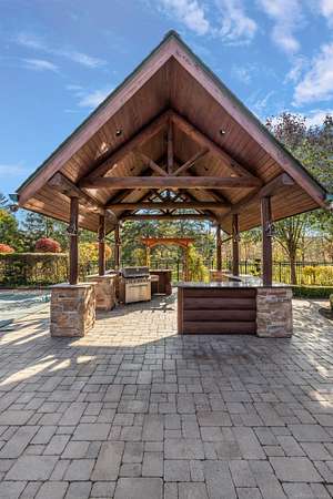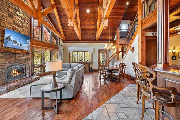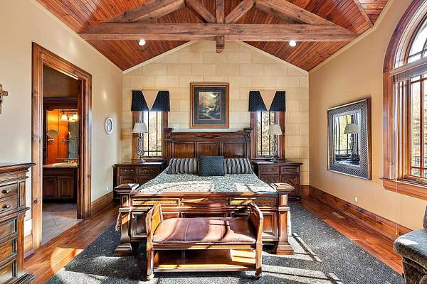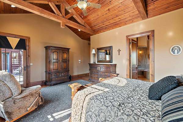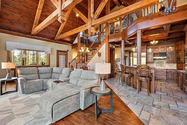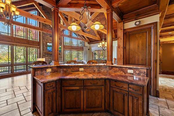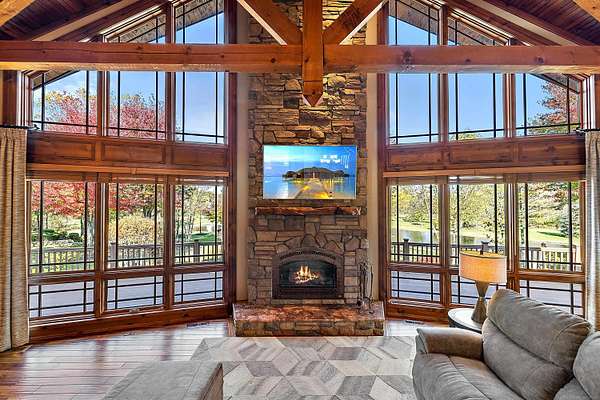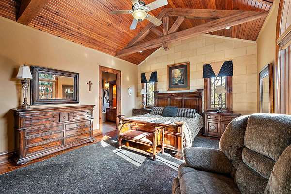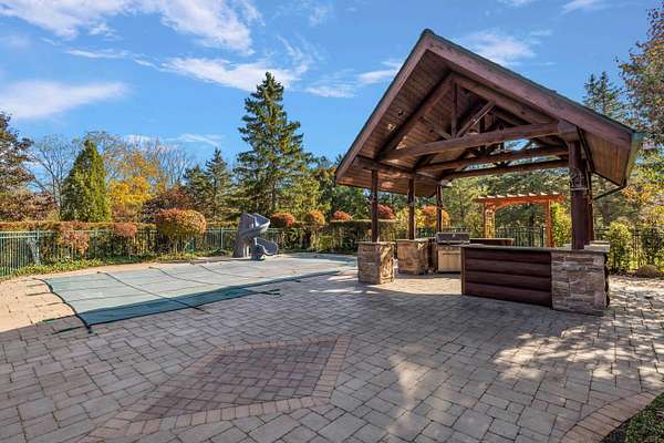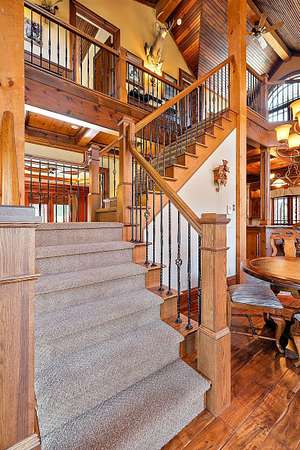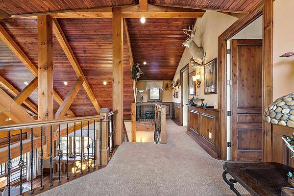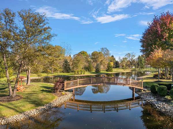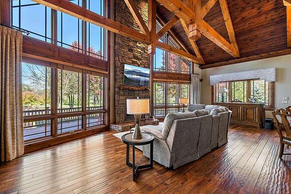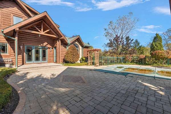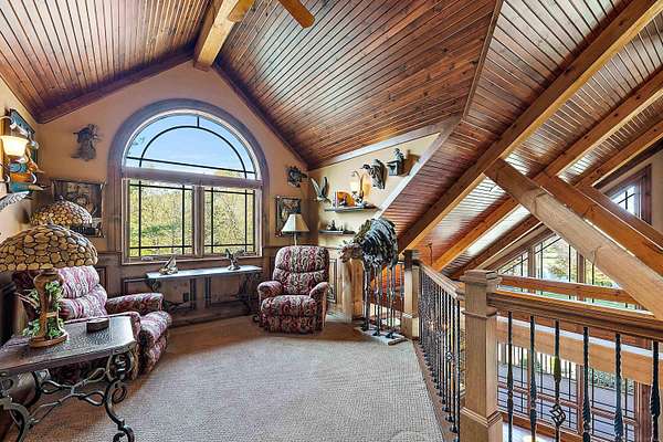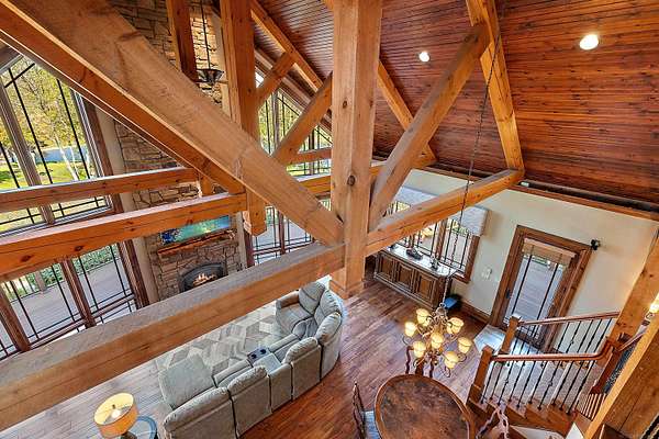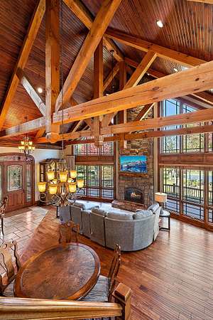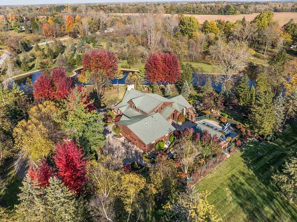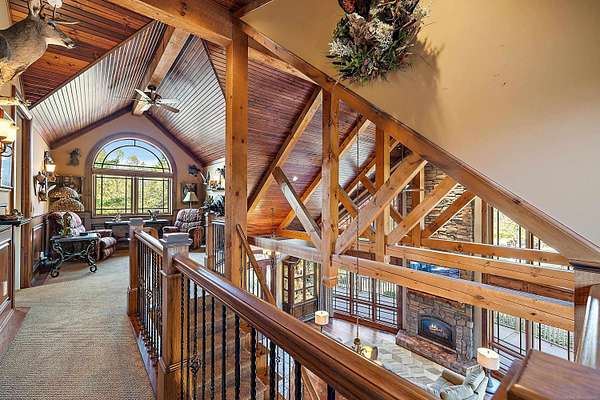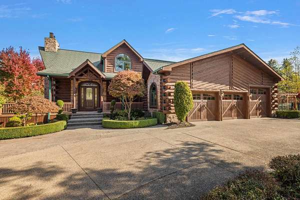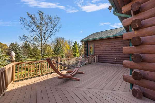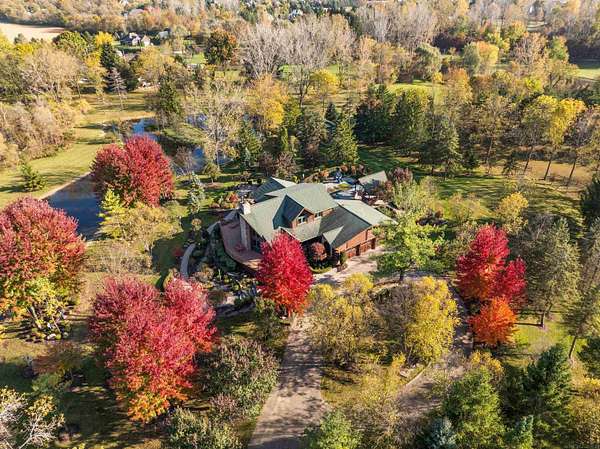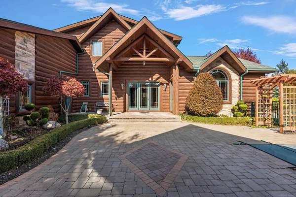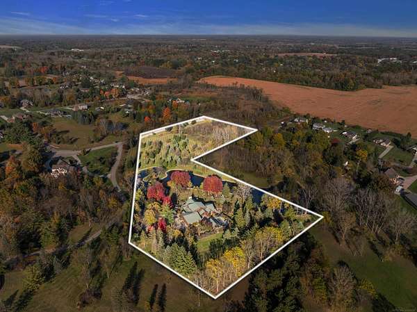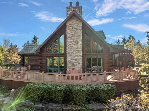 Discover your dream retreat with this Stunning Timber Frame, Post and Beam, Custom Log Home nestled on 7.5 beautifully landscaped acres with seclusion and privacy. Better than new, this home combines an "up north" feel with luxury amenities, perfect for both relaxation and entertaining. Spacious Living: 2,900 sq ft featuring a main floor master suite, a fully finished basement, and an open-concept living area with 24 ft ceilings and timber beams. Gourmet Kitchen: Custom oak cabinets, travertine tile flooring, and GE Monogram built-in appliances. Inviting Great Room: Stone surround with an artisan gas fireplace, perfect for cozy gatherings. Luxurious Master Suite: Access to outdoor living, a massive ensuite with a walk-in shower, jetted tub, water closet, and an organized walk-in closet. Functional Spaces: A main floor office/den with built-in cabinets and a door wall to outdoor areas, plus a convenient laundry room off the garage with ample storage. Upper Level Retreat: A bonus room and two bedrooms with a Jack and Jill bath, featuring 8 ft doors and pine ceilings. Entertainment-Ready Basement: Fully finished walkout with a bar, entertainment area, and gym. Over 5000sq ft of finished living space. Expansive Garage: A 4-car garage with three doors (2 at 8 ft, 1 at 10 ft), wall heater, extra electrical outlets, and direct access to the pool area. Outdoor Paradise: An Anderson gunite pool and grill gazebo, complemented by exquisite landscaping--perfect for entertaining or simply enjoying nature. This estate has seen hundreds of thousands invested in landscaping and upgrades, making it a rare find ready for a new owner to cherish. Don't miss your chance to own this incredible property!