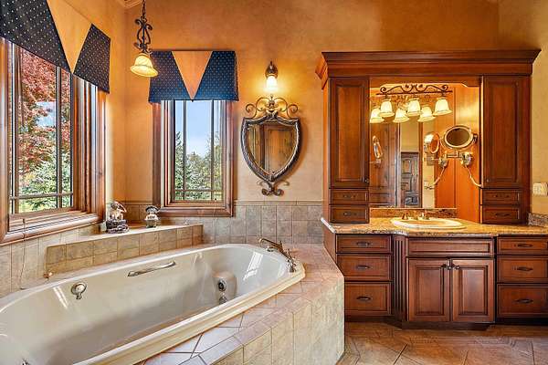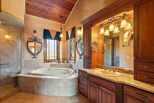 - 9 ft Ceilings, Ceramic Floors, Hardwood Floors, Spa/Jetted Tub, Sump Pump, Walk-In Closet, Wet Bar/Bar, Window Treatment(s)