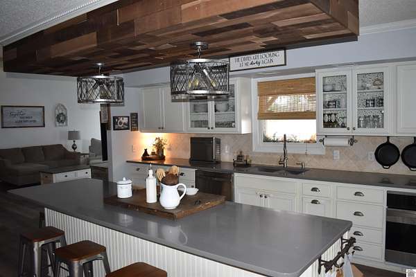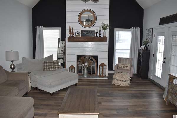 5.5 ACRES IN LONE OAK! Exceptional 4500+ square foot home with a detached garage and man cave with full bath and a 50'X30' shop. The home features 4 bedrooms and 4.5 baths with high vaulted entry and living room. The farmhouse style kitchen features solid surface countertops, white cabinets, stainless steel appliances with gas cooktop and tons of storage. The Primary Suite bedroom is on the main floor with an office/nursery connected to it. The large Primary bath features his and her vanities and large walk-in closet. Each of the three spacious bedrooms upstairs have ensuite bathrooms as well as a large bonus room. Huge back deck is great for entertaining; the beautiful grounds are perfect for gardening, light farming, and room to run and play! Also features an underground storm shelter.