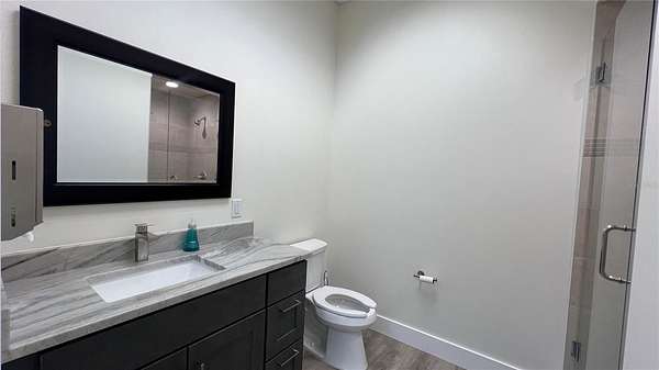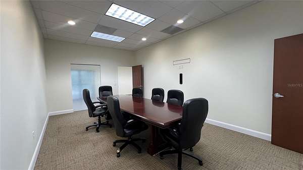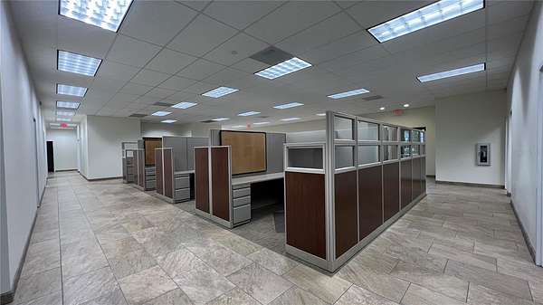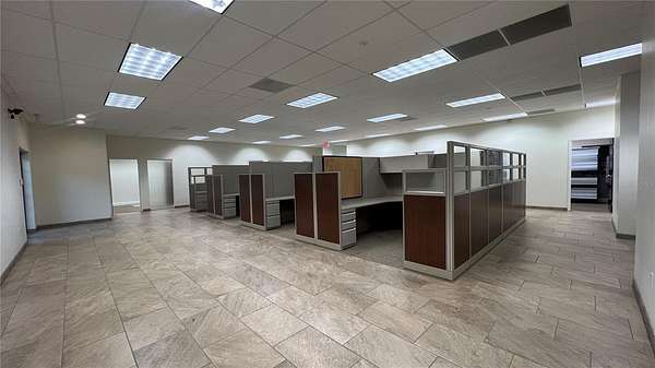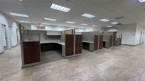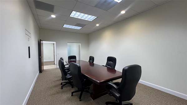 The interior layout is designed to support productivity and comfort. It features seven private offices, eight premium cubicles, a large conference room, a spacious breakroom, and both private and shared restrooms. Natural light fills every office, creating a bright, welcoming environment, while accent lighting enhances the professional aesthetic. The property offers four entrances for convenience and flow.