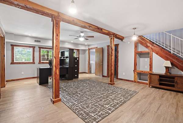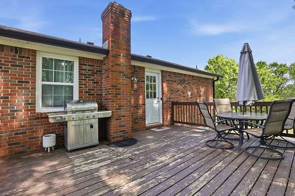 Remodeled all brick home on 5 picturesque acres, complete with a creek running through the backyard and surrounded by towering, mature oak trees. Enjoy outdoor living with a spacious two tiered deck and a covered patio below, perfect for entertaining or relaxing in a peaceful setting. The property also features an out building and barn, offering ample storage and versatility.