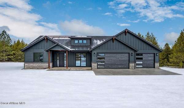 Newly built luxury home on 10 private acres in Deer Park, WA, located in the gated community of Timber Valley Estates. This custom 4-bedroom, 3-bath residence plus office offers a thoughtfully designed, floor plan with high-end finishes throughout. Vaulted ceilings enhance the open, light-filled living spaces, while the chef's kitchen features an oversized island, double ovens, quality cabinetry, and a spacious butler's pantry-ideal for entertaining. Two guest bedrooms are connected by a Jack-and-Jill bathroom, providing comfortt and functionality. Enjoy paved private roads, underground power, and available high-speed internet. This newly built home offers the perfect blend of luxury, acreage, and modern convenience, with room to add a shop, animals, or simply enjoy peaceful country living just minutes from town.