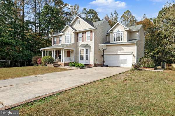 Welcome home to this beautifully maintained 5-bedroom, 3.5-bath colonial in the highly sought-after Fox Run community, perfectly situated on a private 2+ acre lot! The main level features an inviting open layout with a bright living room or office, a formal dining room, and a spacious family room that flows seamlessly into the beautifully updated kitchen-complete with a stunning butcher block island. Upstairs, you'll find a generous primary suite with vaulted ceilings, a newly renovated spa-like bathroom, and two walk-in closets. Three additional bedrooms and a large full bathroom provide plenty of space for family and guests. The recently finished basement offers even more living space, including a spacious bedroom with a custom closet, a full bathroom, and a large flex area-perfect for a home gym, media room, or playroom. Step outside to your private backyard oasis, ideal for entertaining family and friends or simply relaxing and enjoying the peaceful surroundings. This home is conveniently located to Dahlgren Naval Base, Downtown Fredericksburg, VRE, and more. Don't miss your opportunity to own a home in one of King Geroge County's most desirable neighborhoods