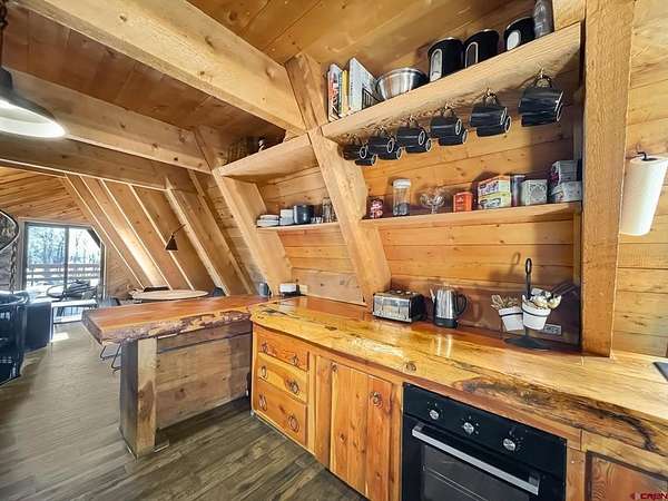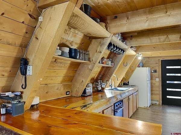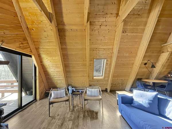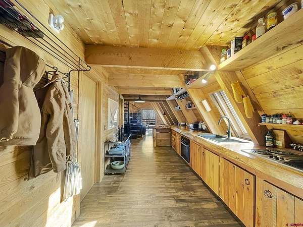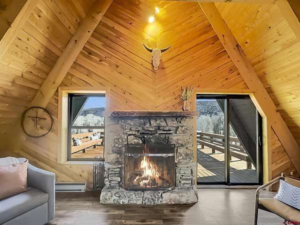 Liz Heidrick, Needlerock Mountain Realty and Land, LLC, 970-234-5344, liz.needlerock@gmail.com, http://www.needlerockrealty.com/: Crystal Creek runs through this fabulous property with a year-round home or RECREATION RETREAT on 8.6 acres! Enjoy ice skating on the creek, all winter, snowshoeing, snowmobiling, hunting, fishing and long summer nights by the outdoor fire pit. National Forest Access Nearby. Home easily SLEEPS 10+ PEOPLE. This 3 BR 2 BA solid A Frame Cabin has a spiral stair case that goes from the finished walkout basement, through the lovely main floor and up to the loft. Main floor has a kitchen, master bedroom, remodeled bathroom with gorgeous Claw Foot soaker Tub, dining area and spacious living room area with wood burning custom rock fireplace. Finished basement has a large den with 2 sets of bunk beds, game room area, bathroom, laundry room, storage room, vault, and one car attached garage. The spacious loft has 2 twin beds plus a private bedroom with a king sized bed. NEW DOORS, WINDOWS, OPENING SKYLIGHTS, flooring, carpet, and oven make this a home ready for winter. Brand NEW BACK DECK with built-in seating overlooks CRYSTAL CREEK , which meanders through the the beautiful meadow below. AN ENCLOSED FRONT PORCH with tons of storage/mudroom. Views of the Black Canyon from the deck are awesome! The original barn and shed grace the meadow and are perfect for livestock. A charming chicken coop is set up and ready to go. Property is completely fenced in with a metal gate at the entrance. This property is right near the North Rim of the Black Canyon and the Crystal Creek entrance to the Black Mesa Gunnison National Forest entrance. NO COVENANTS OR DEED RESTRICTIONS OF ANY KIND!