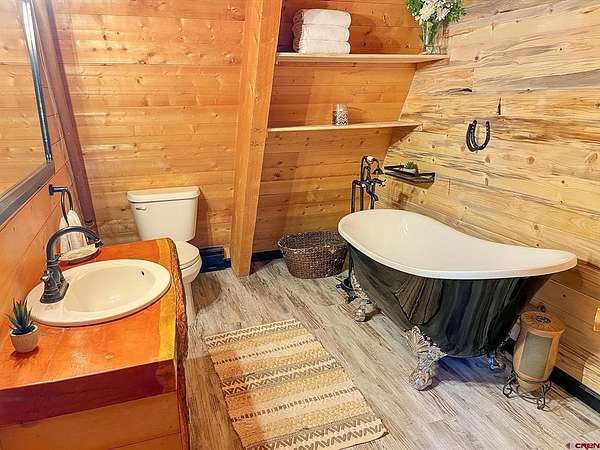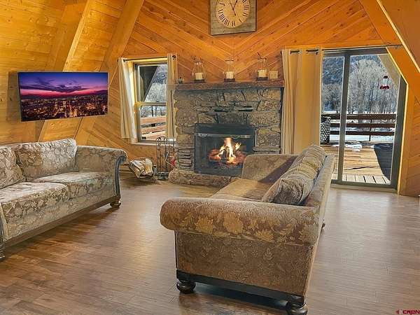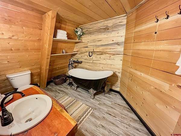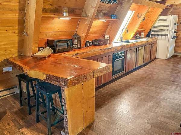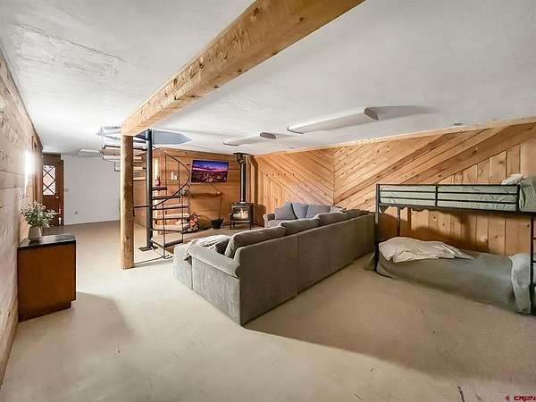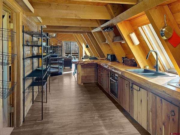 Liz Heidrick, Needlerock Mountain Realty and Land, LLC, 970-234-5344, liz.needlerock@gmail.com, http://www.needlerockrealty.com/: Crystal Creek runs through this fabulous property with a year-round home or RECREATION RETREAT on 8.6 acres! Enjoy snowshoeing, snowmobiling, hunting, fishing and long summer nights by the outdoor fire pit. National Forest Access Nearby. Home easily SLEEPS 10+ PEOPLE. This 3 BR 2 BA solid A Frame Cabin has a spiral stair case that goes from the finished walkout basement, through the lovely main floor and up to the loft. Main floor has a kitchen, master bedroom, remodeled bathroom with gorgeous Claw Foot Soaker Tub, dining area and spacious living room area with wood burning custom rock fireplace. NEW HALO water filter is a care free system. Finished basement has a large den with a bunk beds, bedroom with king bed, game room area, bathroom, laundry room, storage room, vault, and one car attached garage. The spacious loft has 2 twin beds plus a private bedroom with a king sized bed. (MOST FUNRNITURE IS INCLUDED) NEW DOORS, WINDOWS, OPENING SKYLIGHTS, flooring, carpet, large wood stove in basement and oven make this a home ready for winter. Brand NEW BACK DECK with built-in seating overlooks CRYSTAL CREEK , which meanders through the the beautiful meadow below. AN ENCLOSED FRONT PORCH with tons of storage/mudroom. Views of the Black Canyon from the deck are awesome! The original barn and shed grace the meadow and are perfect for livestock. A charming chicken coop is set up and ready to go. Property is completely fenced in with a metal gate at the entrance. The driveway has been upgraded for easy entry with a trailer. This property is right near the North Rim of the Black Canyon and the Crystal Creek entrance to the Black Mesa Gunnison National Forest entrance. NO COVENANTS OR DEED RESTRICTIONS!