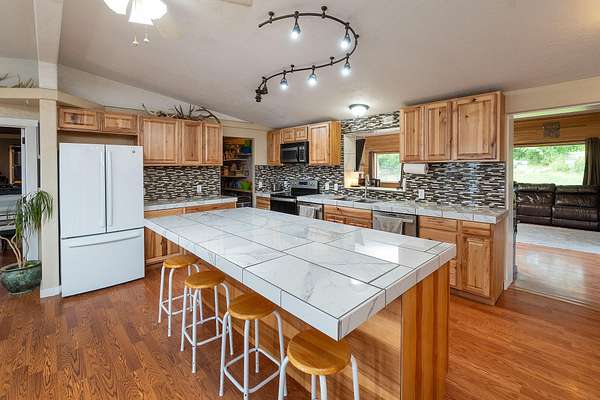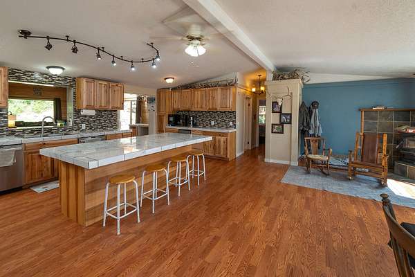 Rooted in country, 40 private acres with sweeping valley views, this property offers the space, quiet, and charm of small-town living. The 3,462 sq ft home features 4 bedrooms and 3 baths, including two spacious primary suites-perfect for multi-generational living or hosting guests. The updated kitchen shines with hickory cabinets, a huge island, new countertops and backsplash, coffee/buffet bar, wine/mini fridge, and two dishwashers. New laminate flooring, a cozy woodstove, mini-split (2024), and whole-house water filtration add comfort. Pet-friendly features include an automatic dog door, food/water station, and invisible fence. Outside, you'll find a 1,872 sq ft barn, horse shelter, power, and automatic livestock waterers-fully fenced and ready for animals. Whether you're dreaming of a working farm, peaceful retreat, or space to roam, this one checks all the boxes.