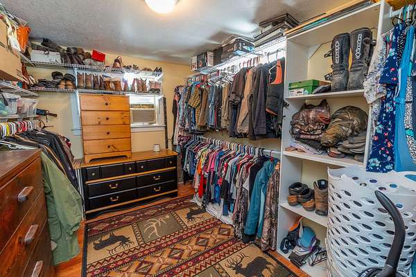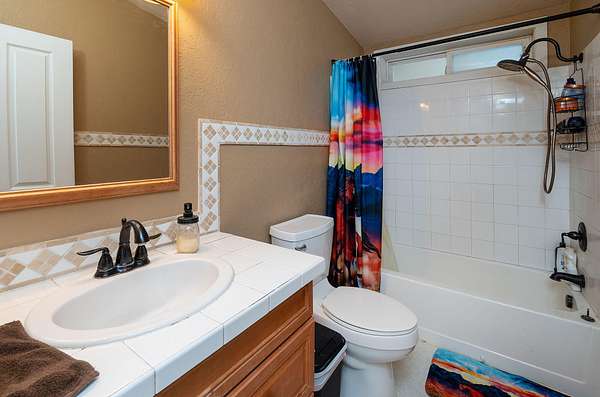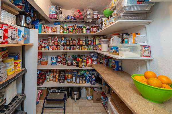 - Ceiling Fan(s), Double Vanity, Fiberglass Stall Shower, Linen Closet, Pantry, Primary Downstairs, Shower/Tub Combo, Stone Counters, Tile Counters, Tile Shower, Walk-In Closet(s), Wired For Sound