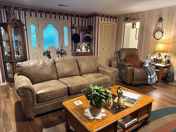 WHAT MORE COULD YOU NEED/WANT? Check out this place! Shelbyville ISD! 20.7 acres, Mixture of Woods & Pasture! Well Built 3/2 Brick, Metal Roof, Nice Size LR, WBFP, Fresh Kitchen Cabinet Paint, All same color, but in the pics, it looks different. Sep DR + Breakfast Area, Primary Bath has Walk-In Bath Tub. Has Dbl Att Garage, Concrete Parking. Whole House Generator. Separate Building to be living quarters/office/craft room/man cave/Mother-in-Law Quarters, or Place for Extra Guests during Holidays, has everything to finish out and hook up, including sheetrock, appliances, kitchen & bath fixtures, even has porch! Generator also will run this building. Large Portocover. Barn. Conex Box. Also has meter and pole for another homesite/mobile home etc. Situated on Paved Road, Pretty Setting, Within about 5 miles of Huxley Bay Marina, Toledo Bend Lake. Farm Equipment and Implements can be purchased separately.