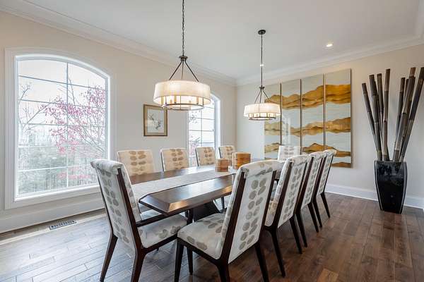 - Bookcases, Breakfast Room, Ceiling Fan(s), Chandelier, Coffered Ceiling(s), Crown Molding, Double Closets, Double Shower, Double Vanity, Dry Bar, Eat-In Kitchen, En Suite, Entrance Foyer, Granite Counters, High Ceilings, High Speed Internet, Kitchen Island, Open Floorplan, Pantry, Recessed Lighting, Separate Dining Room, Separate Shower, Smart Thermostat, Soaking Tub, Steam Shower, Tub/Shower Combo, Walk-In Closet(s)