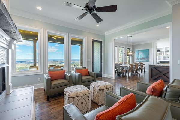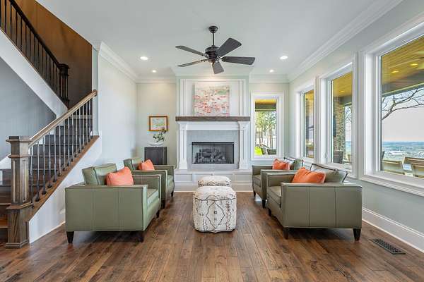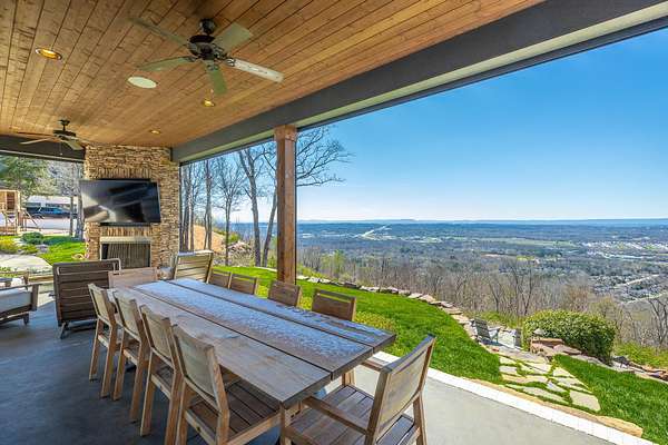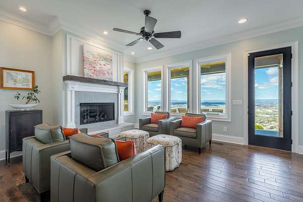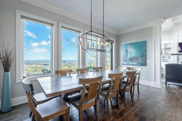 Spectacular in every way, this exceptionally well-planned, architecturally designed and custom built home captures breathtaking, panoramic views stretching as far west as downtown and as far east as North Carolina, including the Snow Hill Valley and the Chilhowee Range, allowing you to escape everyday life! Perfectly situated on 2.66+/- acres on the brow in the gated community of Mountain Lake Estates, which features a community pool, this property is convenient to downtown Chattanooga, Cleveland and Dalton. Features include breathtaking views from almost every room, specialty ceilings, spacious rooms, custom finishes, upscale appliances, remote-controlled blinds on the main level, and outdoor spaces to enjoy all the views. The inviting entryway features a beveled glass front door and a 12' ceiling. From the foyer, enter the oversized formal dining room with stunning mountain views and a wet bar with a warming drawer. This room leads to the eat-in kitchen, where cooking will absolutely be a joy while you take in the stunning views. This spacious & well-appointed kitchen includes a Thermador six-burner gas cooktop with griddle, double oven, oversized refrigerator, two dishwashers, custom cabinetry with pull-out drawers, a large walk-in pantry, a breakfast bar for six, and a center work/serve/prep island with a sink. There is access to the patio which connects to a covered porch with an adjustable fully enclosed screens on all sides. Grilling station with a sink, refrigerator, and a floor-to-ceiling stone fireplace and hearth. The kitchen is completely open to the great room, which features a soaring coffered ceiling, a wall of windows, a gas fireplace with a hearth, and built-in bookcases. Keeping room off the kitchen features a gas fireplace and a wall of windows to enjoy the sunsets. Main level study with doors leading to the front covered porch with water feature. Retreat to the main level primary suite, which includes a sitting area to take in the stunning views. Enjoy a spa experience in your primary bath complete with a claw-foot tub, a walk-through shower with multiple showerheads, steam feature, heated floors, two walk-in closets, washer and dryer hook-up, and a private covered patio. 14' x 16' +/- laundry/mudroom with an island, sink, laundry chute, and abundant cabinets and counter space. Main level workout room or specialty room, and a powder bath. Upper level offers four bedrooms, each with a private bath, stunning views, and a walk-in closet. Bonus room with full bath, a media room featuring a wet bar with a refrigerator and sink, huge walk-in attic storage, and an office are included. Four car garage with lots of utility cabinets. Enjoy the outdoor space, which features stone patios, a firepit area, garden beds, and a putting green, while taking in the stunning views. Convenient to Cambridge Square, restaurants, shopping, Honors Golf Course, The Champions Golf Club, Publix, Parks, and more! Invest in the quality of your home life both inside and out: create a larger-than-life outdoor space and an escape to your own private serenity that is also the place you call home. The buyer is responsible to do their due diligence to verify that all information is correct, accurate, and for obtaining any and all restrictions for the property. The number of bedrooms listed above complies with local appraisal standards only.