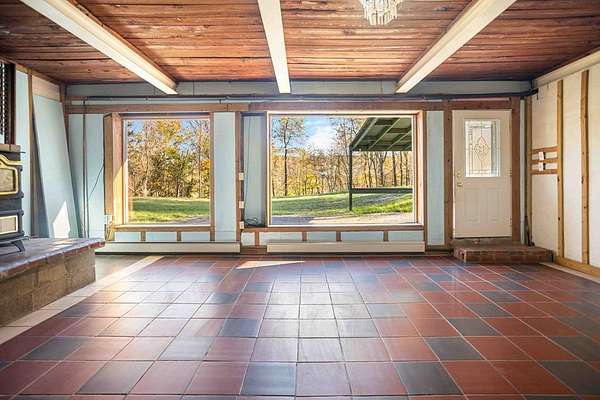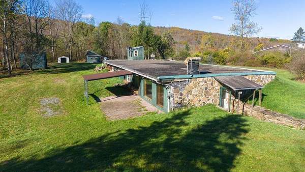 GILLETT, PA - A rare opportunity to own a true Earth-Home! This one-of-a-kind 4-bedroom, 1-bath residence offers 8 rooms of distinctive, energy-efficient living, including a storage rm, utility rm kithcen and living rm. Designed for comfort and sustainability, the masonry construction is built directly into the earth--keeping the home naturally cool in summer and warm in winter. Enjoy living on-grid or off-grid, with cozy heat provided by a coal stove. The 4-acre property features multiple outbuildings, a pond, and gently sloping terrain with views overlooking a nearby stream. Relax on the covered patio and take in the peaceful countryside surroundings. Located just 5 minutes from the New York State border, this home provides quick access to major highway systems while nestled in beautiful Wells Township--home to a lovely community park and part of the Troy Area School District. A multi-layered roof system topped with earth and gravel completes this remarkable, nature-integrated home.