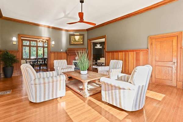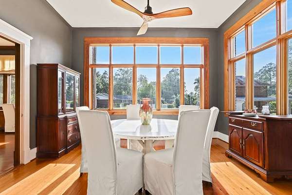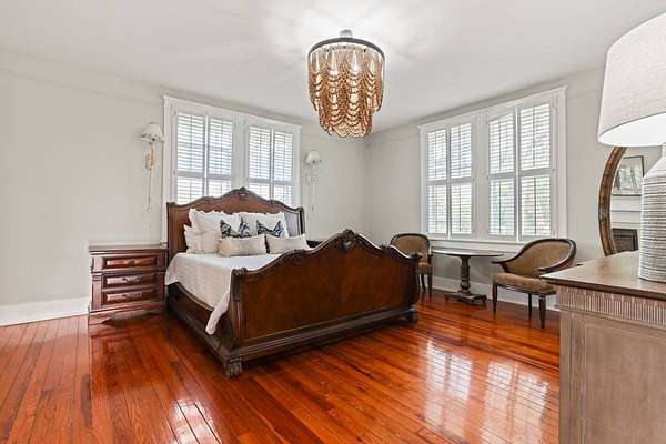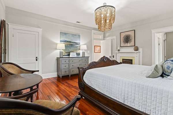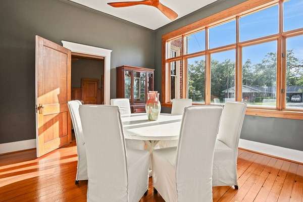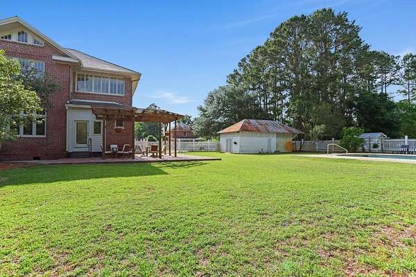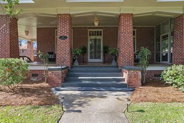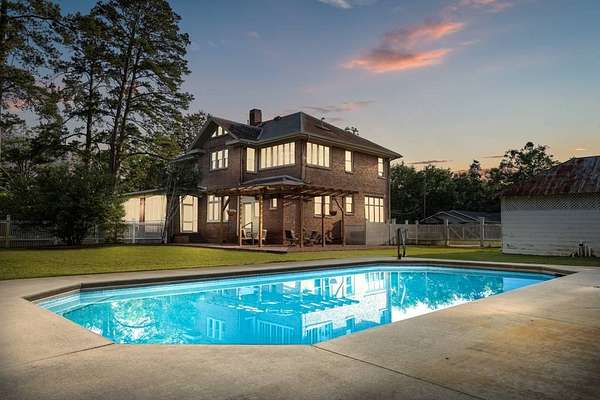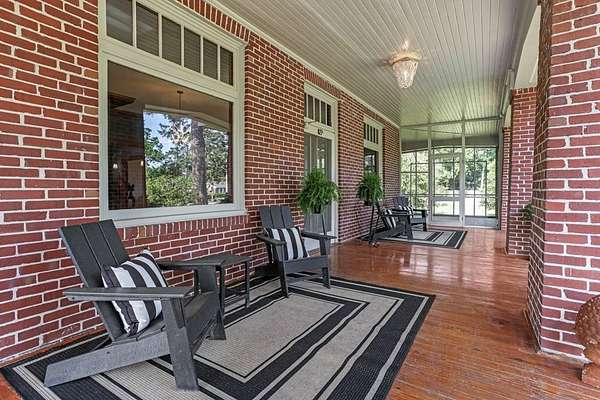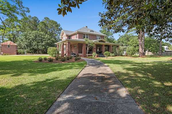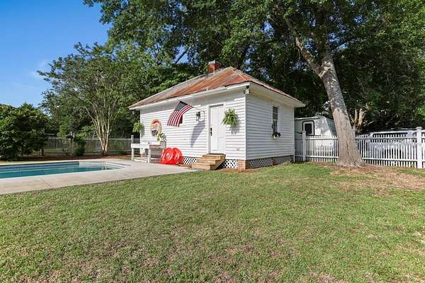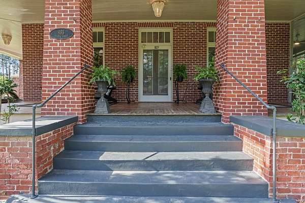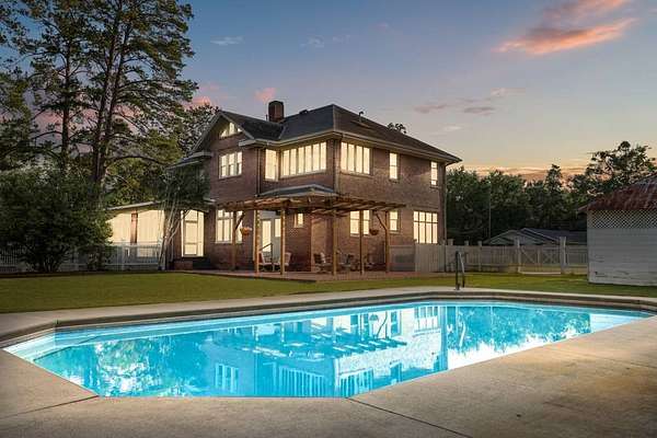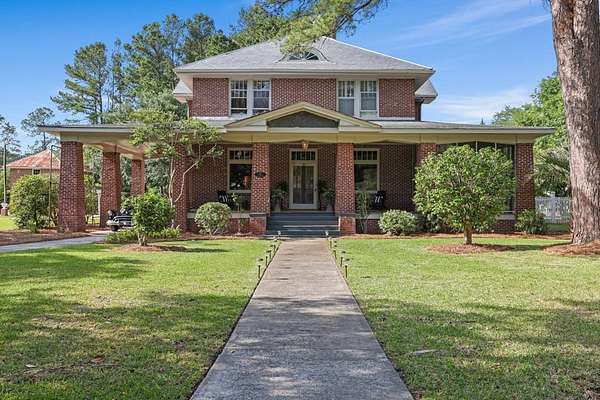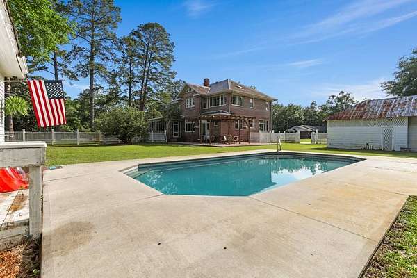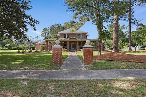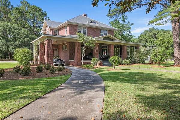Welcome to The Benjamin Peeples Home - a timeless Southern treasure nestled in the quaint town of Estill, SC. This beautifully preserved historic residence blends vintage charm with modern comfort, offering a unique opportunity to own a piece of Lowcountry history. This rare gem is an exquisitely preserved 1915 Southern Colonial home that offers a timeless blend of historic charm and modern refinement. Nestled in the heart of Estill on 1.8 acres, this stately 5-bedroom, 3.5-bathroom residence spans 3,869 sq ft and captivates from the moment you arrive. Step inside to be greeted by breathtaking tiger oak wood trim that wraps every doorway, window, and staircase with warmth and grandeur. The original hardwood floors, high ceilings, and paneled wainscoting speak to the craftsmanship of a bygone era, while tasteful upgrades provide the comfort of today. The expansive living room features rich woodwork, intricate fireplaces, and contemporary chandeliers that offer a striking contrast. The updated kitchen is a chef's delight, boasting sleek black cabinetry, stainless steel appliances, quartz countertops, a center island cooktop, and a dramatic tile backsplash-perfectly marrying historic character with modern convenience. The spacious floor plan includes multiple living areas, second story bedrooms, and a welcoming front porch perfect for enjoying quiet evenings or morning coffee. The home's layout includes a sunlit Carolina room with wraparound windows-ideal as a reading or breakfast nook, office, or guest space-as well as spacious bedrooms with unique color palettes, designer lighting, and stunning wood flooring throughout. The bathrooms are thoughtfully updated while respecting the home's period details. Step outside to your own private oasis: a beautiful in-ground pool accompanied by a charming pool house complete with bedroom and bathroom facilities, making it ideal for hosting gatherings or simply relaxing in the Southern sunshine. Set on a generous nearly two acre lot with mature trees and lush landscaping, the property also boasts a second large backyard area or secondary lot with potential for a garden, outdoor entertaining space, boat or large equipment storage, or even a future second house. There are two additional outdoor storage buildings, one used primarily for pool equipment, the other a two-story garage that could be used as a versatile workshop or gardening storage. The immediate fenced in backyard and swimming pool area also features a large brick terrace patio with a tall custom wood pergola above. Both the side screen porch and the kitchen / mud room have exterior doors that feed into this private and cozy back area. Additional features: 5 original fireplaces, grand staircase with tiger oak balustrade, expansive windows that flood the home with natural light, butler's closet with wet bar / ice maker, secondary staircase, plus third staircase to cool attic access area with spray foamed roof deck, slate roof, with architectural shingles above porch and metal roofing on exterior buildings, large wrap-around porch with screened porch area, 1,200+ sq ft repurposed bonus buildings (3) including pool house / garage / workshop / equip shed / animal pen area, pool house / guest studio apartment features its own bedroom/bathroom/living area and fireplace, potential to be purchased fully furnished and turn-key! No HOA, walking distance to Estill's historic town center. Located in the heart of Estill, this is the perfect blend of small-town charm and modern conveniences. Whether you're looking for a peaceful retreat, Bed & Breakfast, or character-filled family home, 827 Fourth St offers a rare blend of history, charm, and potential in a tranquil Southern setting. The furnishings in place have the option to be included to make this a turn-key, ready to stay property. It's listed on the S.C. Department of Archives and History as the "Benjamin Peeples House".