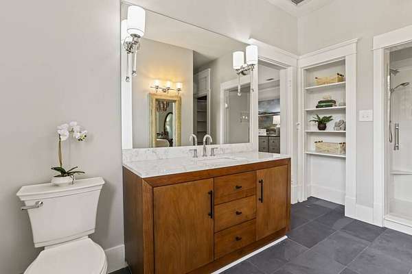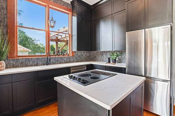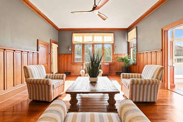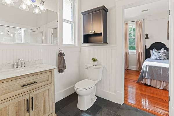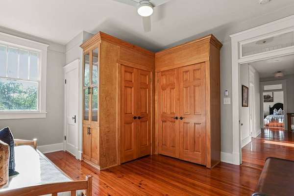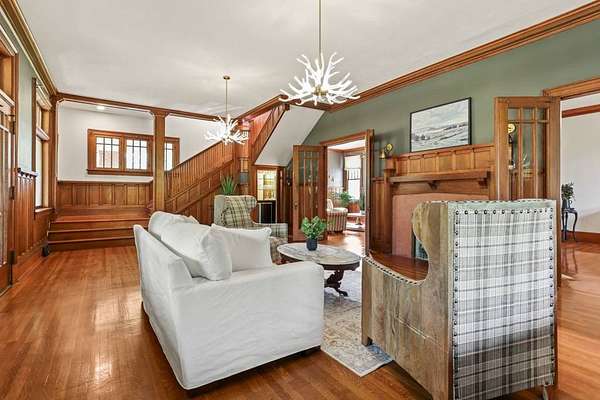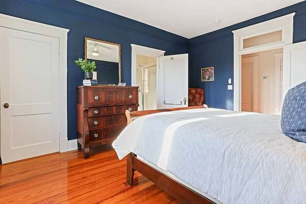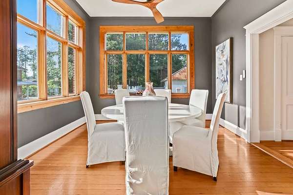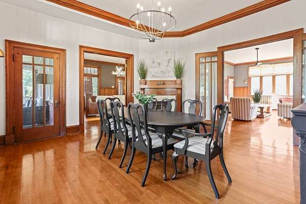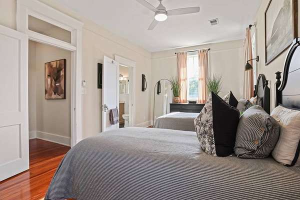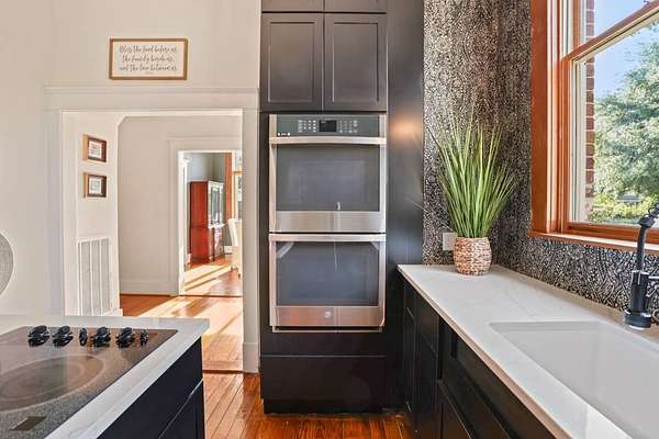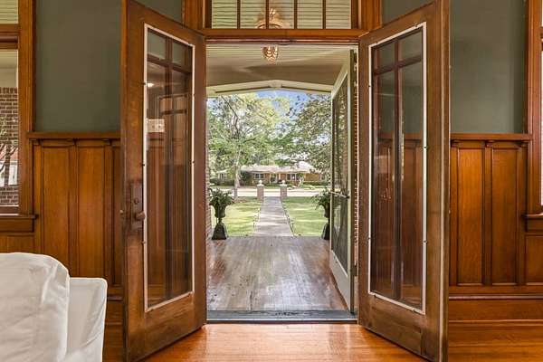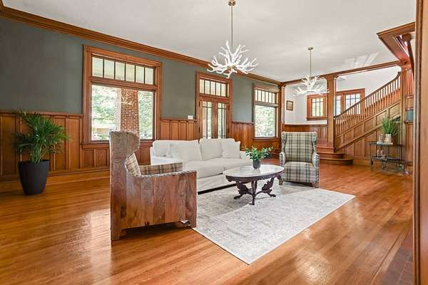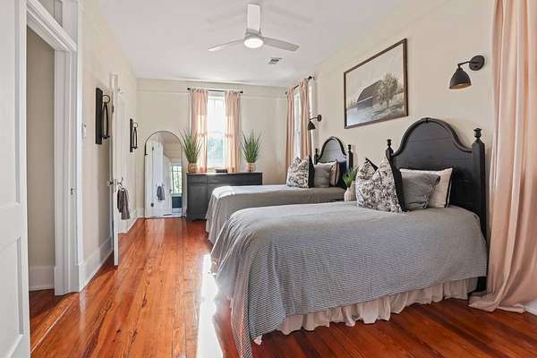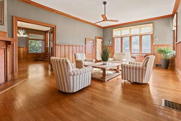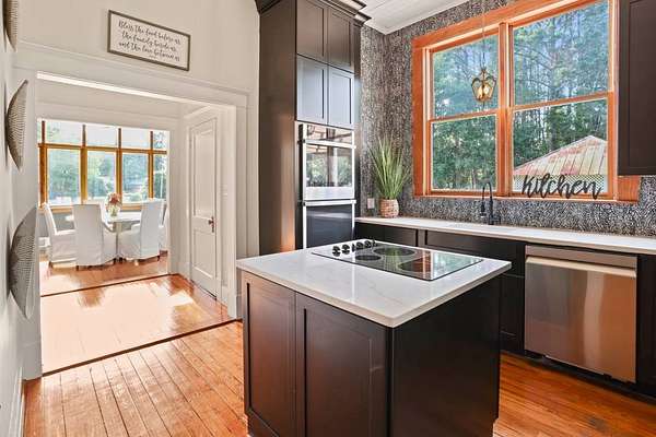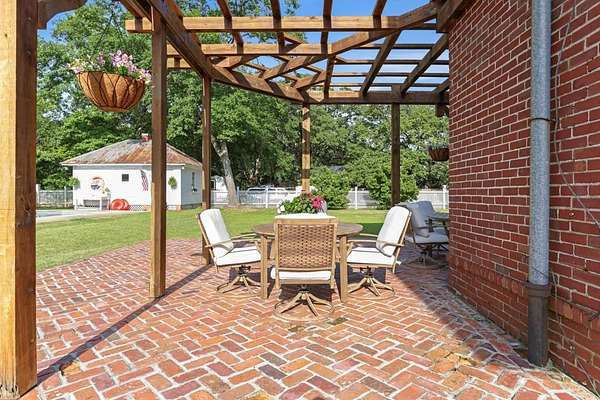 Welcome to The Benjamin Peeples Home - a timeless Southern treasure nestled in the quaint town of Estill, SC. This beautifully preserved historic residence blends vintage charm with modern comfort, offering a unique opportunity to own a piece of Lowcountry history. This rare gem is an exquisitely preserved 1915 Southern Colonial home that offers a timeless blend of historic charm and modern refinement. Nestled in the heart of Estill on 1.8 acres, this stately 5-bedroom, 3.5-bathroom residence spans 3,869 sq ft and captivates from the moment you arrive. Step inside to be greeted by breathtaking tiger oak wood trim that wraps every doorway, window, and staircase with warmth and grandeur. The original hardwood floors, high ceilings, and paneled wainscoting speak to the craftsmanship of a bygone era, while tasteful upgrades provide the comfort of today. The expansive living room features rich woodwork, intricate fireplaces, and contemporary chandeliers that offer a striking contrast. The updated kitchen is a chef's delight, boasting sleek black cabinetry, stainless steel appliances, quartz countertops, a center island cooktop, and a dramatic tile backsplash-perfectly marrying historic character with modern convenience. The spacious floor plan includes multiple living areas, second story bedrooms, and a welcoming front porch perfect for enjoying quiet evenings or morning coffee. The home's layout includes a sunlit Carolina room with wraparound windows-ideal as a reading or breakfast nook, office, or guest space-as well as spacious bedrooms with unique color palettes, designer lighting, and stunning wood flooring throughout. The bathrooms are thoughtfully updated while respecting the home's period details. Step outside to your own private oasis: a beautiful in-ground pool accompanied by a charming pool house complete with bedroom and bathroom facilities, making it ideal for hosting gatherings or simply relaxing in the Southern sunshine. Set on a generous nearly two acre lot with mature trees and lush landscaping, the property also boasts a second large backyard area or secondary lot with potential for a garden, outdoor entertaining space, boat or large equipment storage, or even a future second house. There are two additional outdoor storage buildings, one used primarily for pool equipment, the other a two-story garage that could be used as a versatile workshop or gardening storage. The immediate fenced in backyard and swimming pool area also features a large brick terrace patio with a tall custom wood pergola above. Both the side screen porch and the kitchen / mud room have exterior doors that feed into this private and cozy back area. Additional features: 5 original fireplaces, grand staircase with tiger oak balustrade, expansive windows that flood the home with natural light, butler's closet with wet bar / ice maker, secondary staircase, plus third staircase to cool attic access area with spray foamed roof deck, slate roof, with architectural shingles above porch and metal roofing on exterior buildings, large wrap-around porch with screened porch area, 1,200+ sq ft repurposed bonus buildings (3) including pool house / garage / workshop / equip shed / animal pen area, pool house / guest studio apartment features its own bedroom/bathroom/living area and fireplace, potential to be purchased fully furnished and turn-key! No HOA, walking distance to Estill's historic town center. Located in the heart of Estill, this is the perfect blend of small-town charm and modern conveniences. Whether you're looking for a peaceful retreat, Bed & Breakfast, or character-filled family home, 827 Fourth St offers a rare blend of history, charm, and potential in a tranquil Southern setting. The furnishings in place have the option to be included to make this a turn-key, ready to stay property. It's listed on the S.C. Department of Archives and History as the "Benjamin Peeples House".