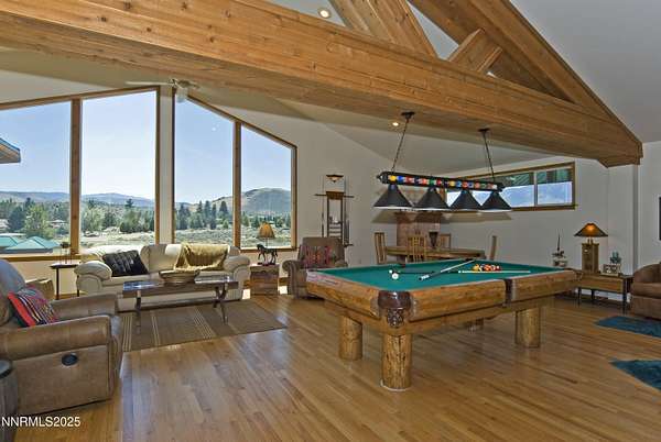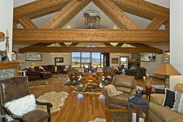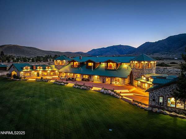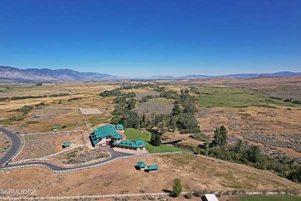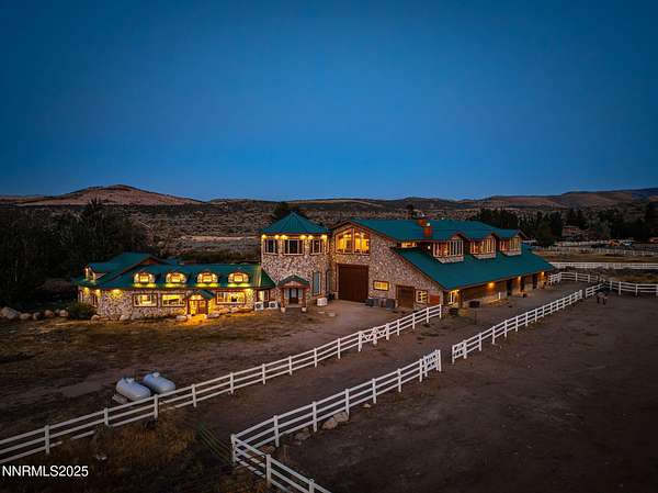 Set along a private stretch of the scenic Carson River, this remarkable 76+/- acre equestrian and lifestyle estate is a rare offering in the Sierra. Just south of Nevada's Carson Valley near Markleeville, CA, the property combines unmatched craftsmanship with true legacy appeal. One of the few riverfront ranches with its own 120-foot private bridge, it offers rare accessibility and exclusivity. Reno-Tahoe International Airport is only an hour away, Lake Tahoe and world-class ski resorts just 30 minutes, and San Francisco within three hours. The centerpiece of the estate is a finely built 8,700+ sq.ft. ranch home featuring 7 bedrooms and 5 bathrooms, thoughtfully designed with a suite of HVAC systems for maximum comfort and energy efficiency. Highlights include two full kitchens (one on each level), a 12-seat movie theatre, and an elevator serving both floors. Expansive windows and a 4,300 sq.ft. deck showcase lush lawns and tranquil river views. Additional improvements include an attached 1,900 sq.ft. guest house, and 1,600 sq.ft. garage and workshop with 5-car capacity and a 7,000 lb. auto lift. Dual electric entry gates with keypad access ensure both security and privacy. Many of the high-quality furnishings may be available in the sale. Designed for the horse enthusiast, the property features a 4,200 sq.ft. indoor arena (40' x 105') with wash bay, 16-ft doors, four stalls, and tack room. This versatile space also lends itself to alternate uses such as private events, auto collections, or specialty storage. Outdoors, the ranch offers a 100' x 200' riding arena, five fenced pastures, and four horse shelters. The manicured grounds include 34,000 sq.ft. of irrigated lawn serviced by a dedicated pump house. An agricultural well with a 5-hp pump produces approximately 100+/- gpm. Mature trees, rolling pastures, and river frontage create a setting that is as functional as it is breathtaking. With over 18,000 sq.ft. under roof, this is a compound of rare quality and scale. Every element reflects the artisanship and pride of ownership invested into its creation. The layout, design, and amenities set this property apart as one of the finest private riverfront ranch estates in the Sierra. For the discerning buyer who values exclusivity, lifestyle, and legacy, this Exceptional Riverfront Ranch Estate is a must see.